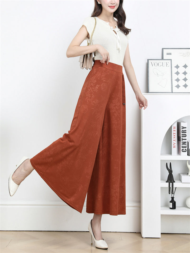 Women's Ethnic Style Jacquard Elastic High Waist Wide Leg Straight Pants