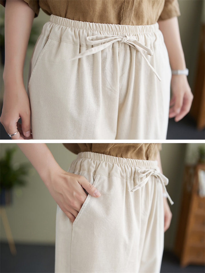 Women's Summer Cool Solid Color Elastic Waist Drawstring Pants