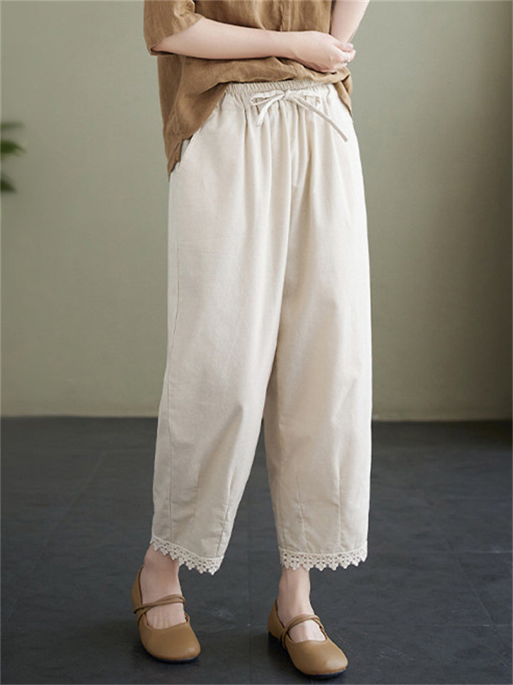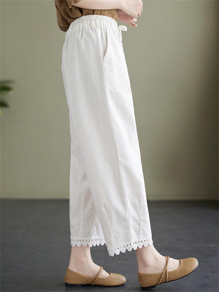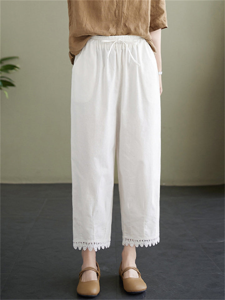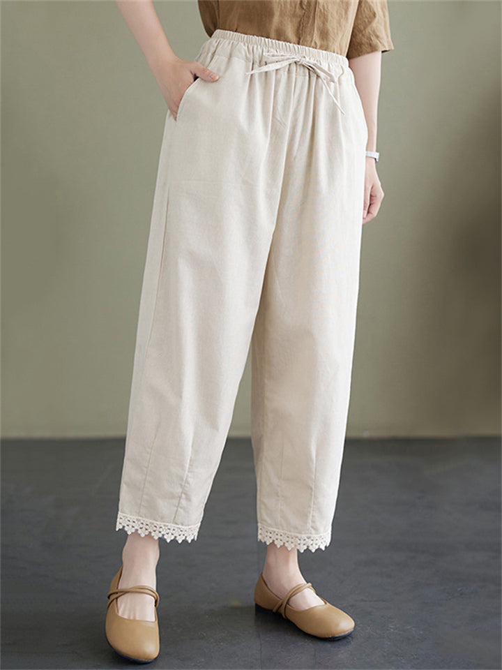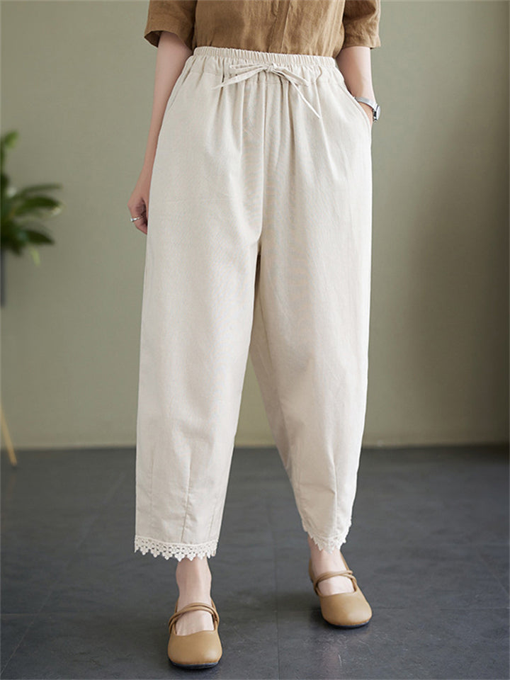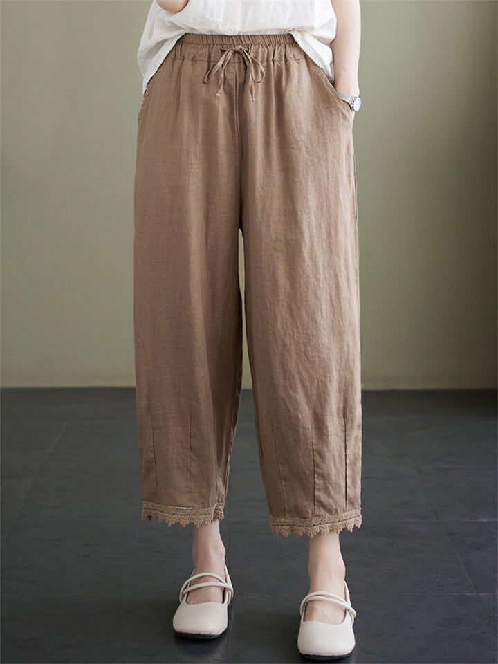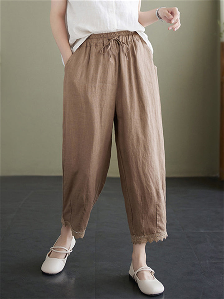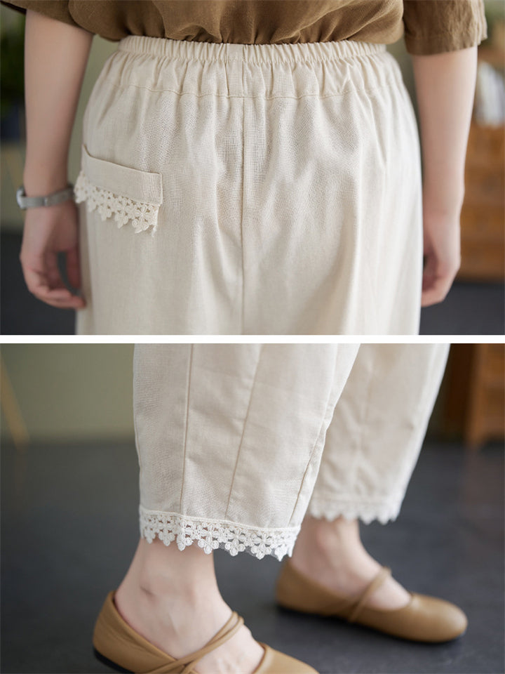 Women's Lace Patchwork Loose Cozy Linen Pants