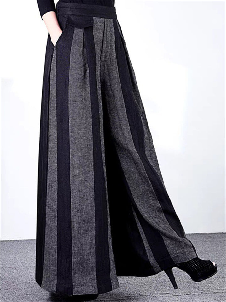 Women's Mid-Rise Stripe Elastic Waist Contrasting Wide Leg Pants