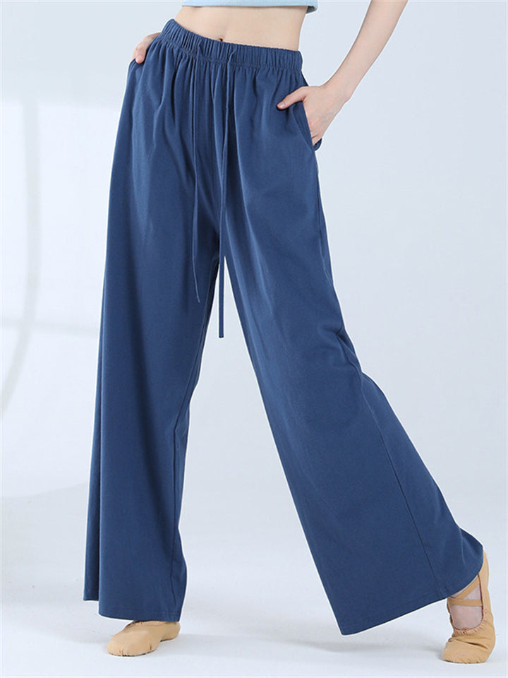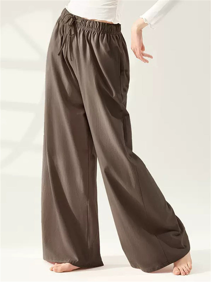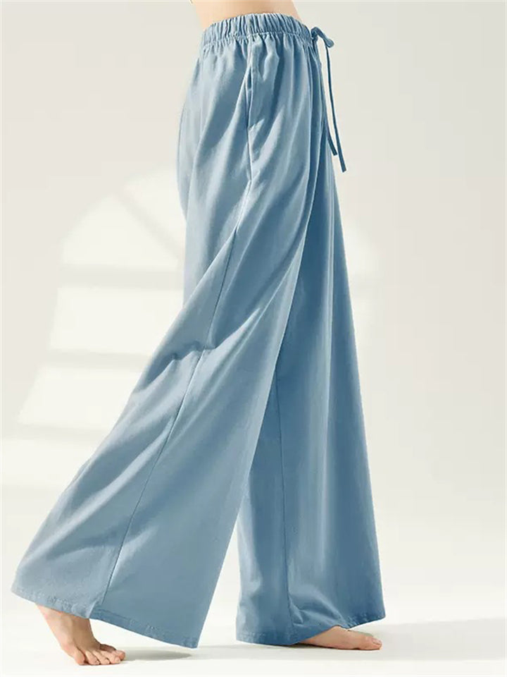 Women's Summer Cool Solid Color Elastic Waist Drawstring Pants