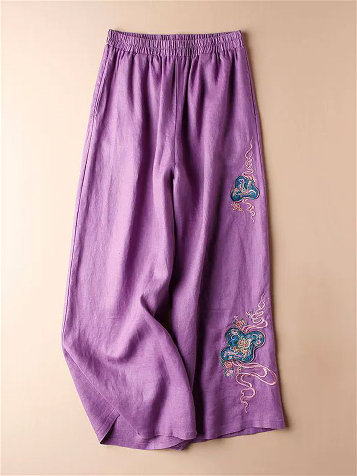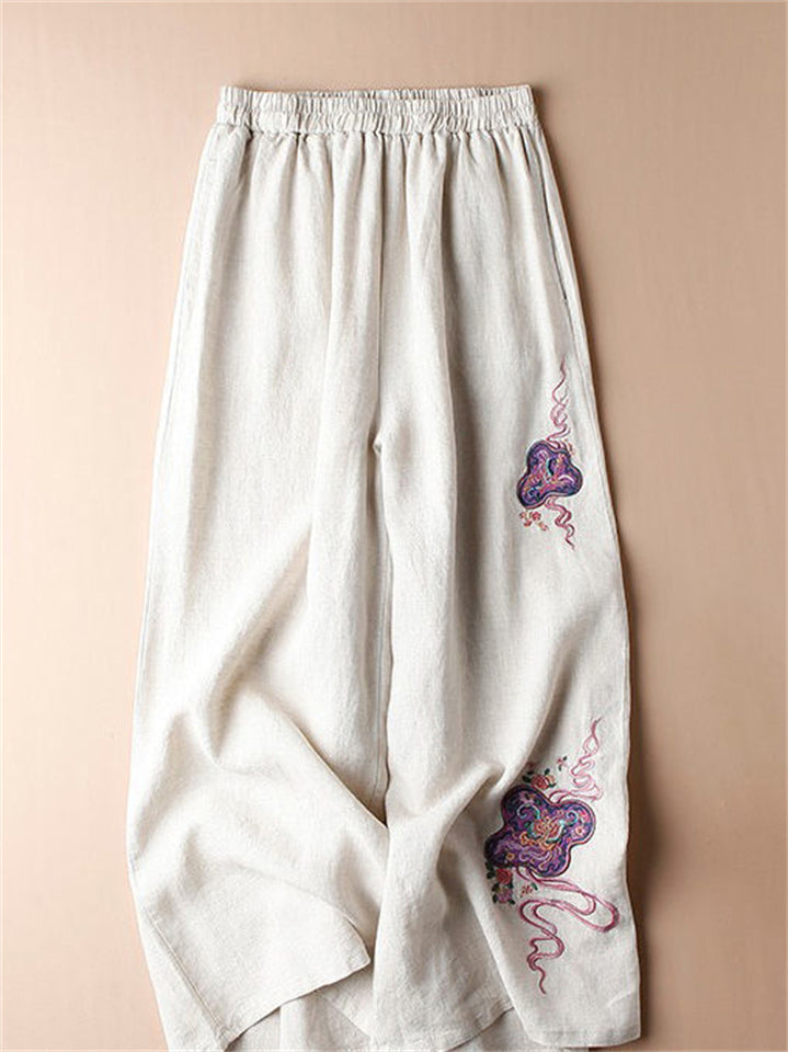 Women's Simple Comfy Ethnic Style Embroidered Wide Leg Pants