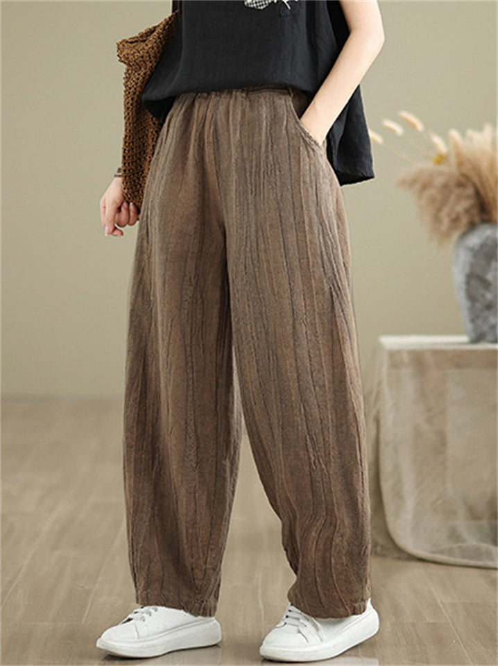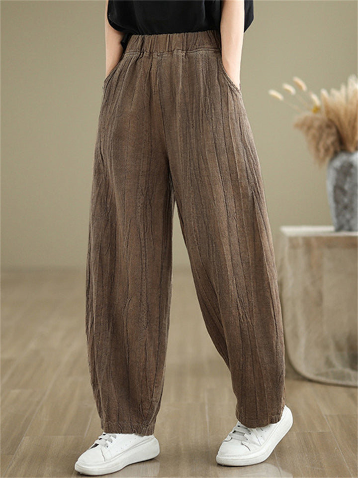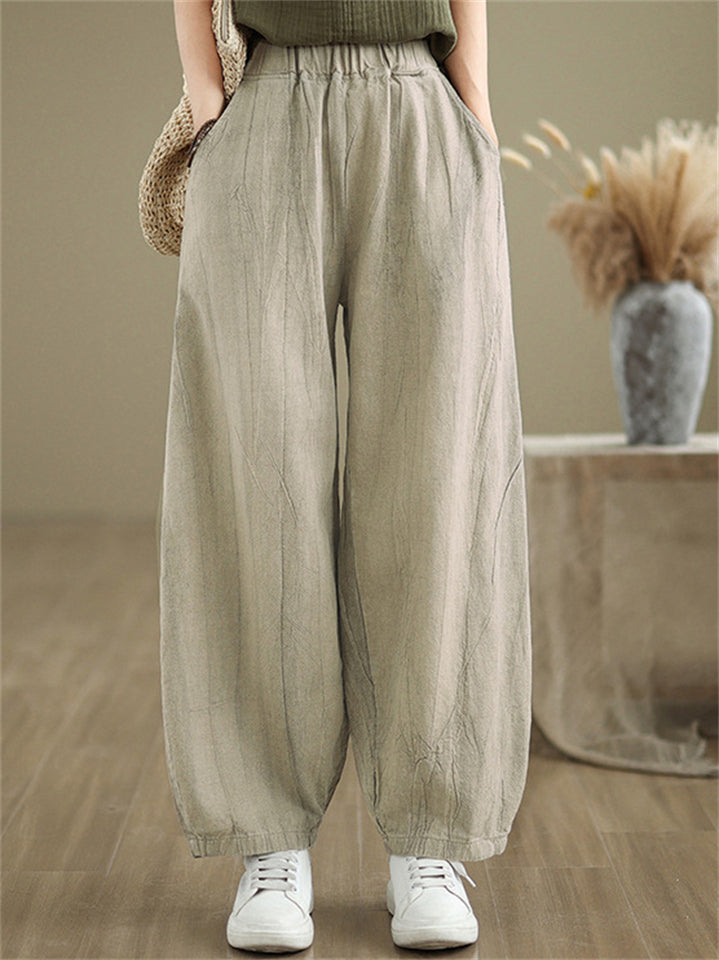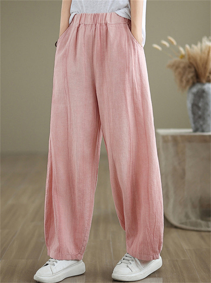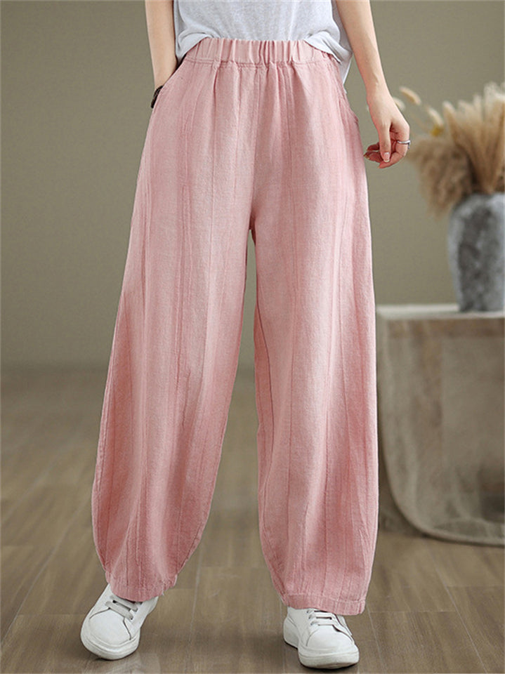 Women's Solid Color Cotton Linen Elastic Waist Wide Leg Pants