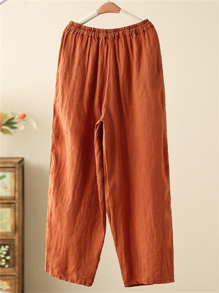 Women's Summer Cool Solid Color Elastic Waist Drawstring Pants
