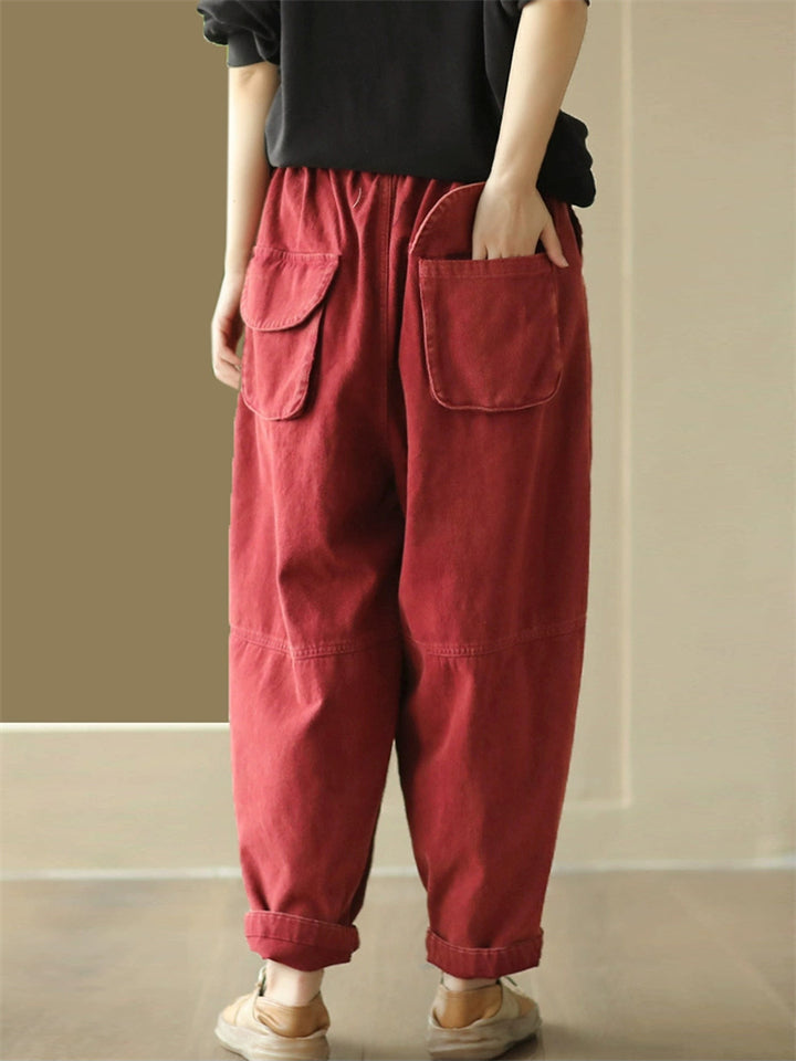 Women's Ethnic Style Flowers Embroidered Comfy High Rise Pants