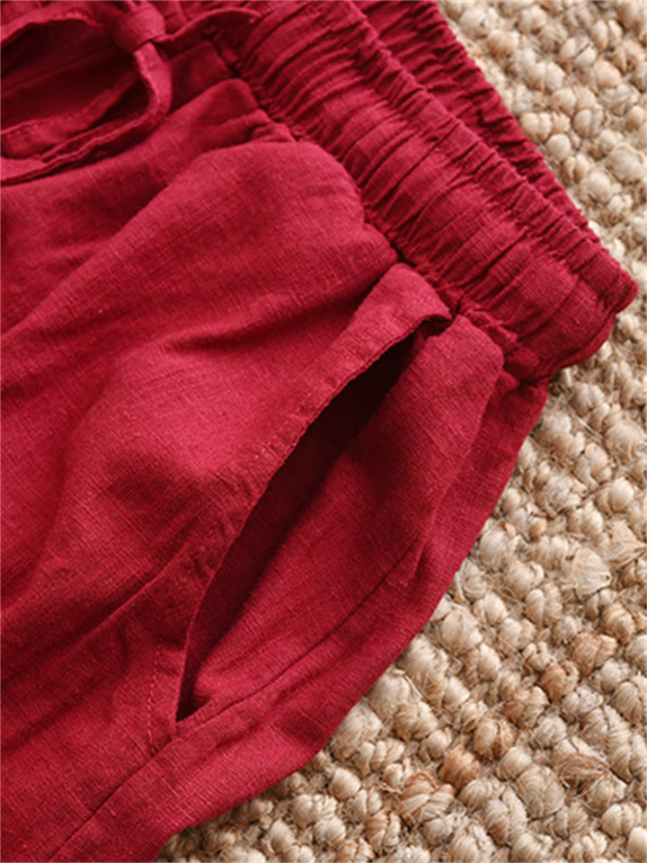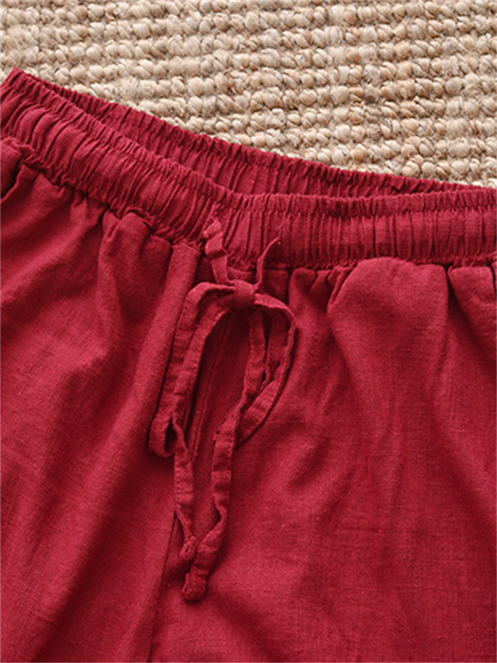 Women's Summer Cool Solid Color Elastic Waist Drawstring Pants