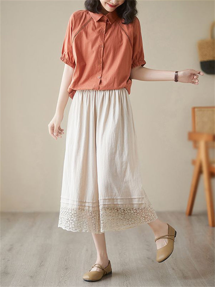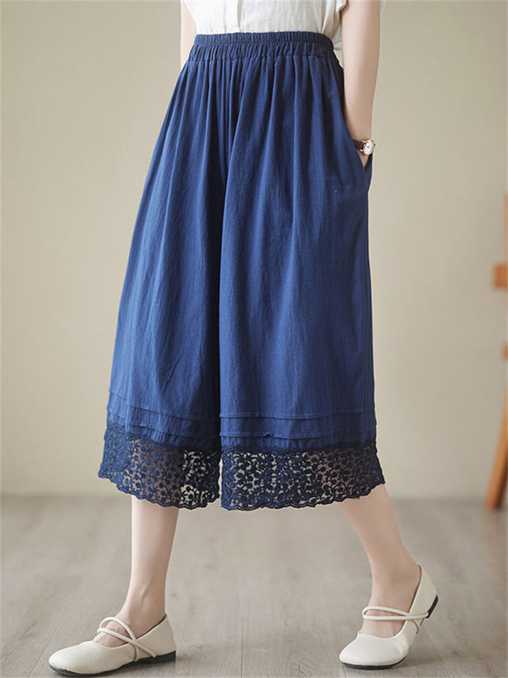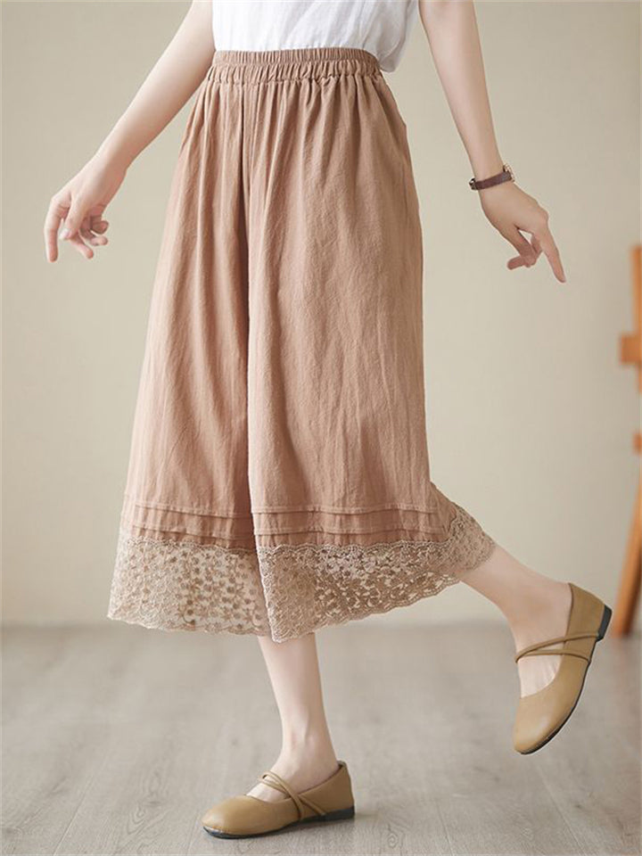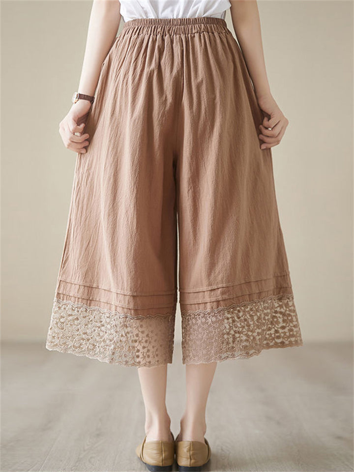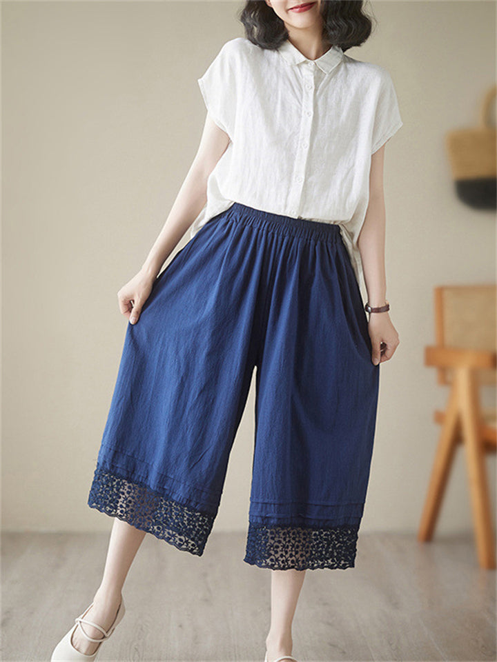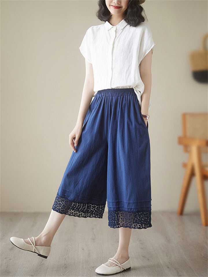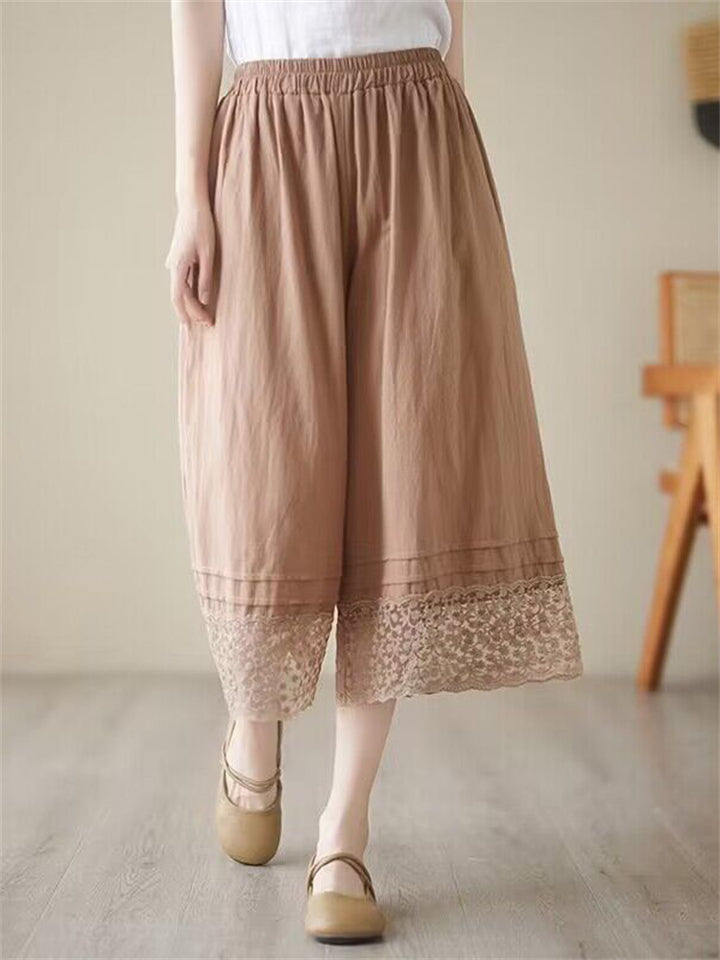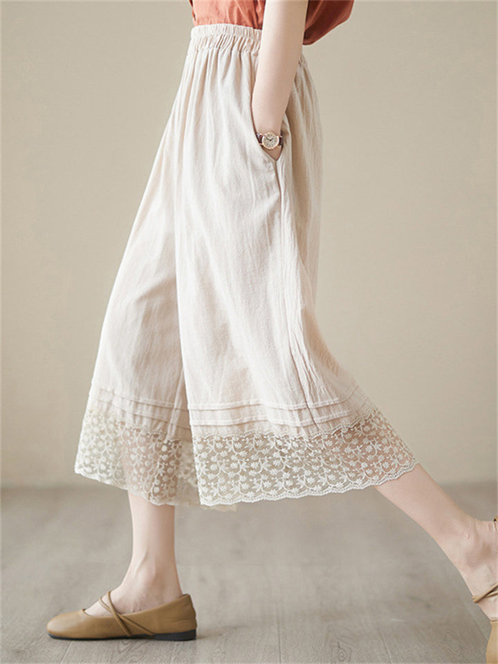 Women's Simple Comfy Ethnic Style Embroidered Wide Leg Pants