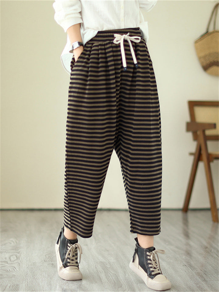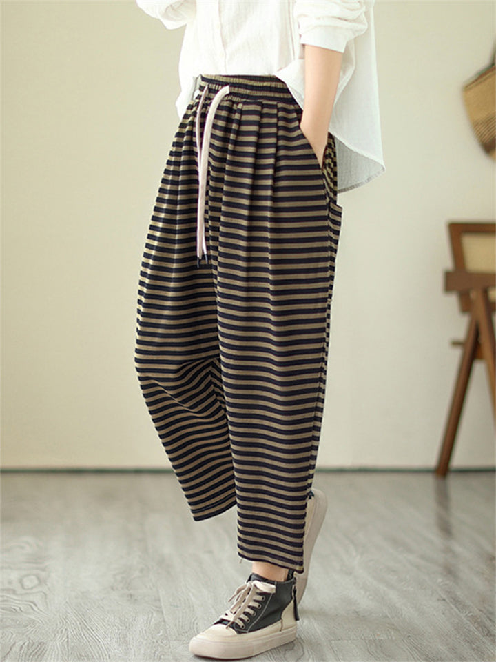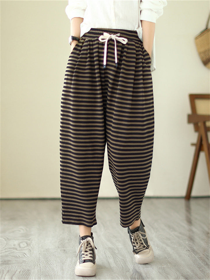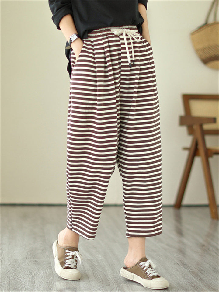 Women's Simple Contrast Color Comfy Geometry Printed High Waist Pants