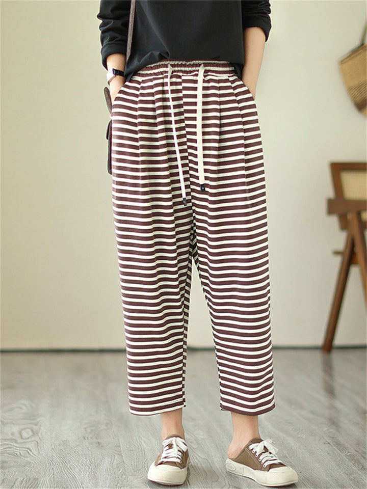 Women's Summer Cool Solid Color Elastic Waist Drawstring Pants