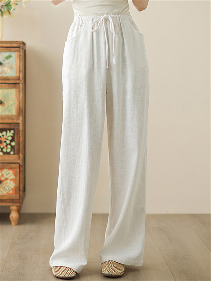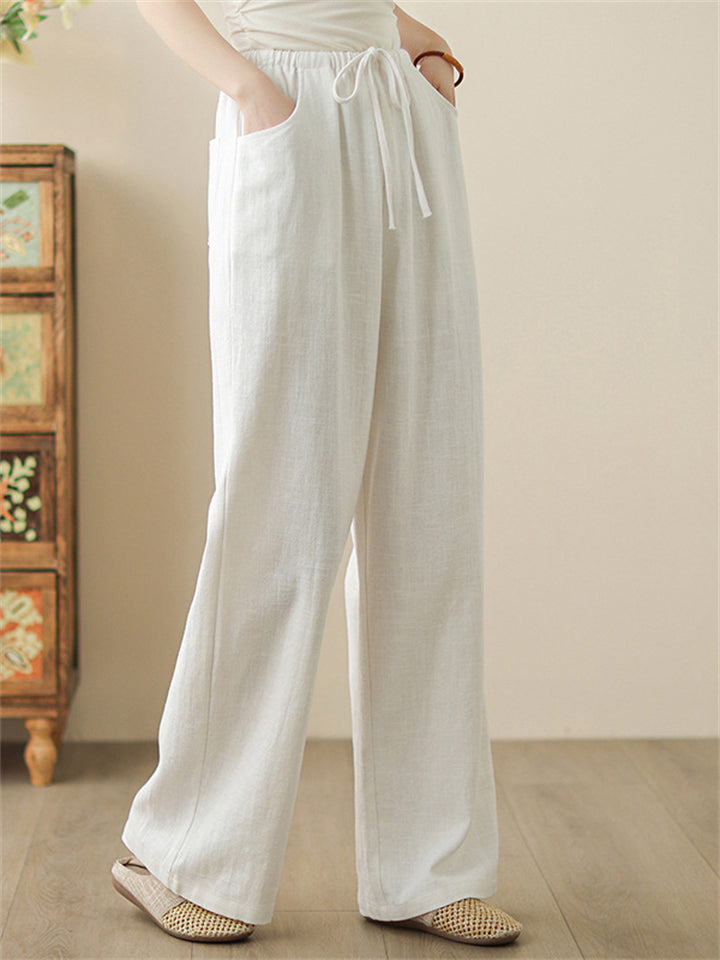 Women's Summer Cool Solid Color Elastic Waist Drawstring Pants