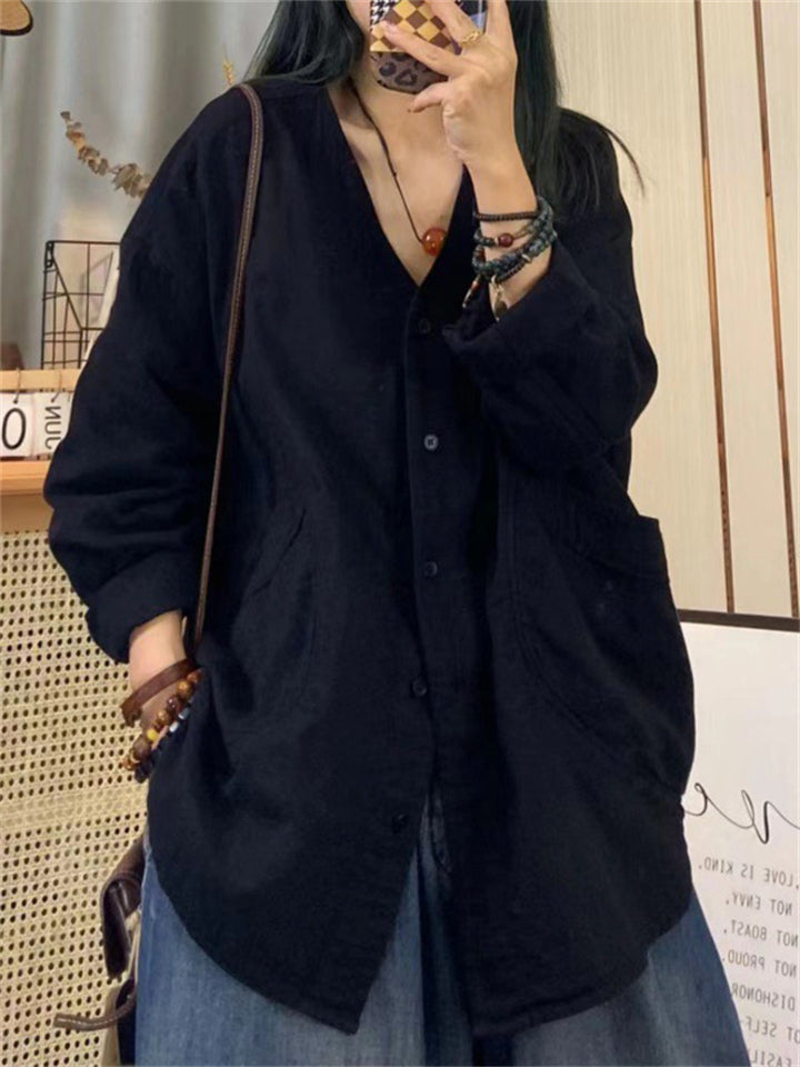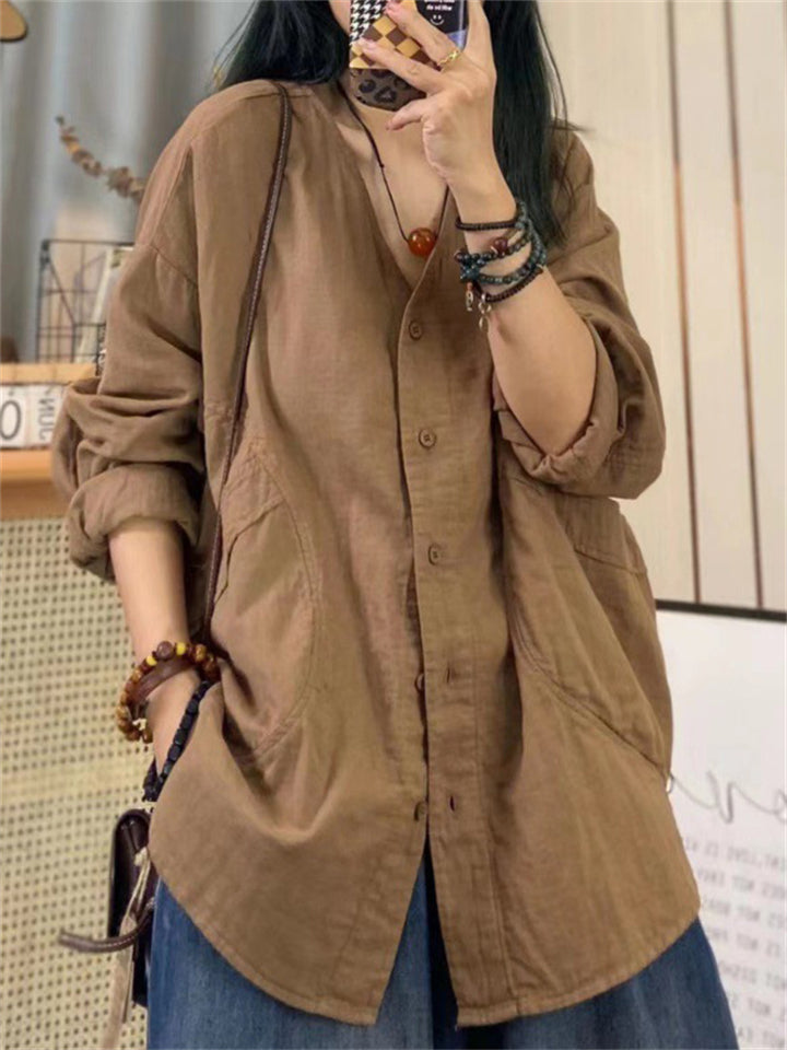 Women's Retro Casual Solid Color Button Up Lapel Cardigan Shirts