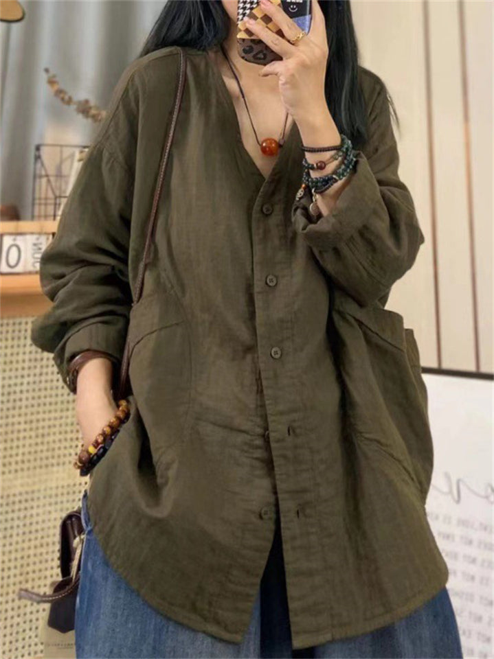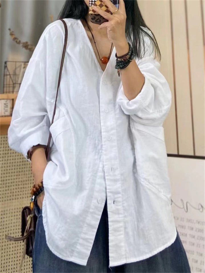 Casual Cotton Long Sleeve V-Neck Shirts for Women