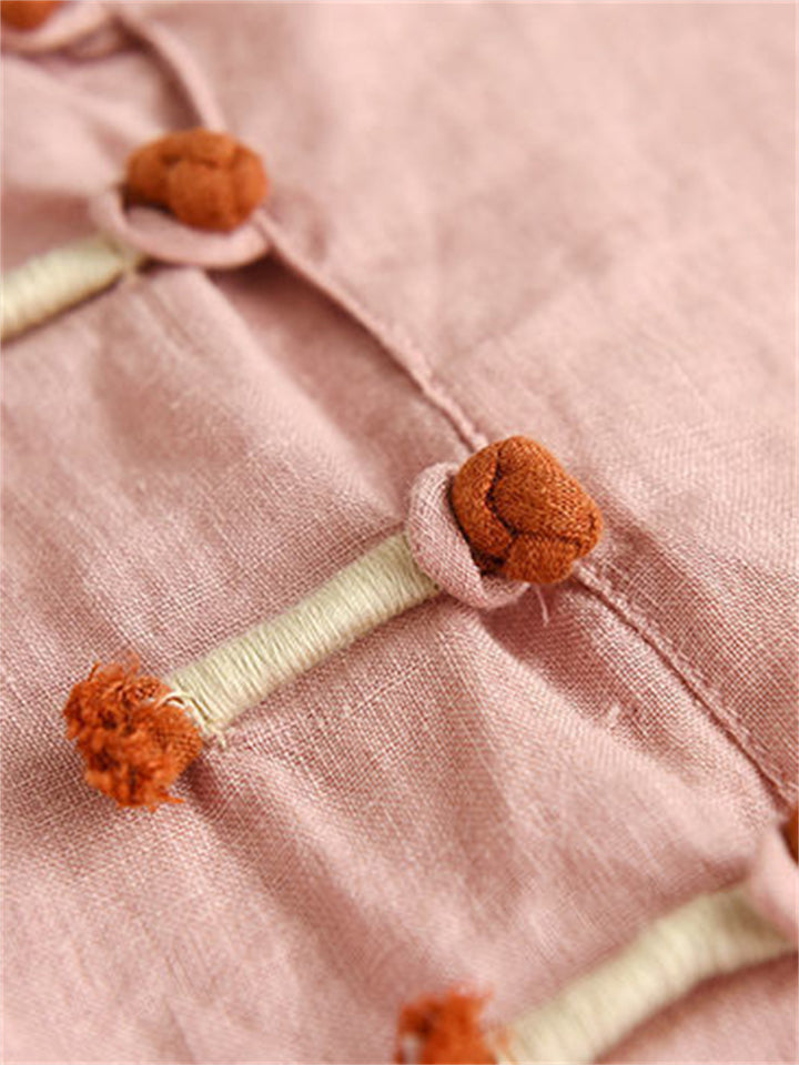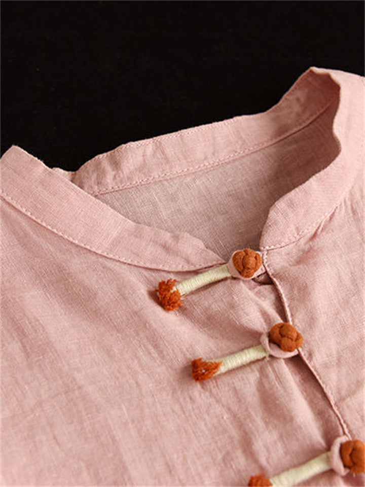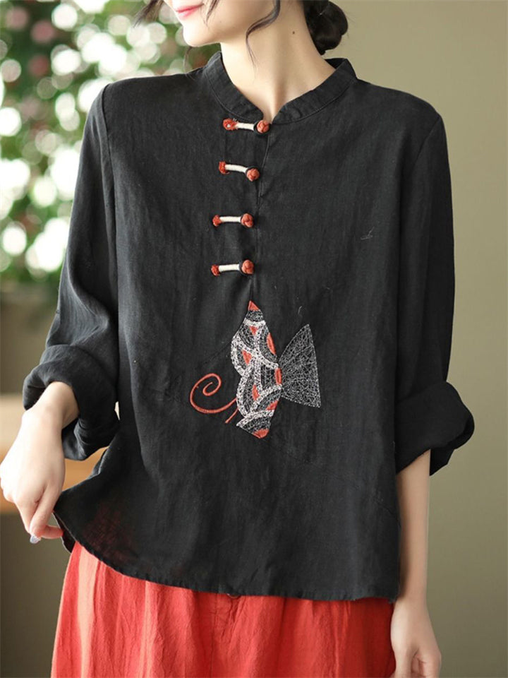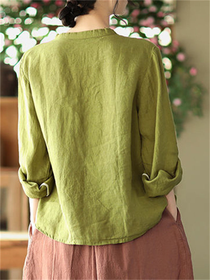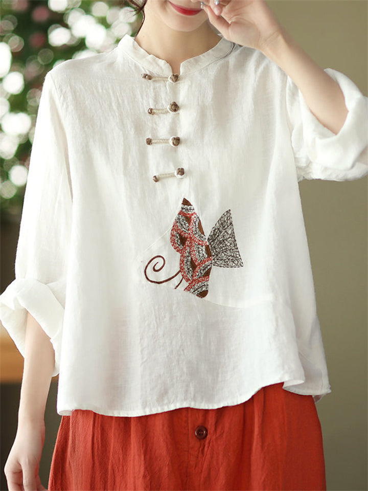 Ancient Chinese Style Floral Embroidery Linen Shirt for Women