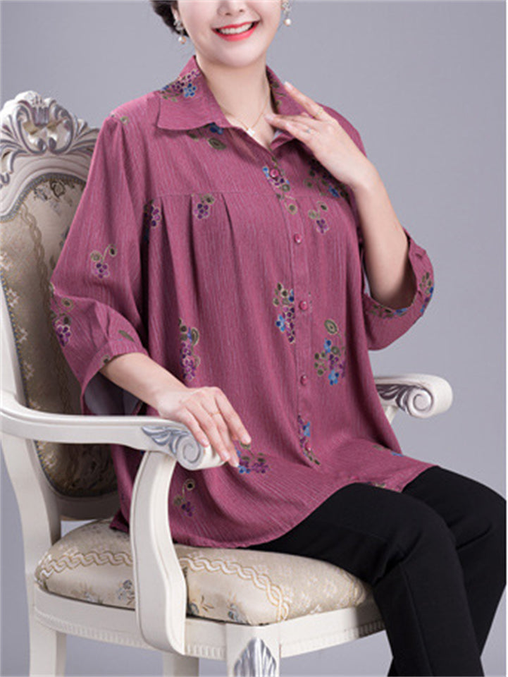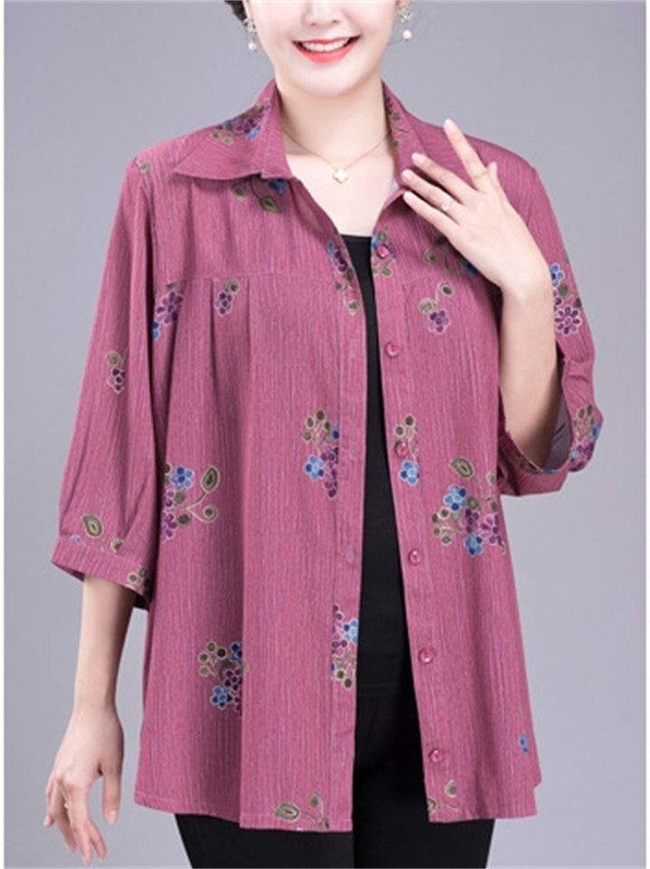 Elegant Plus Size Summer Print Lapel Shirt for Women