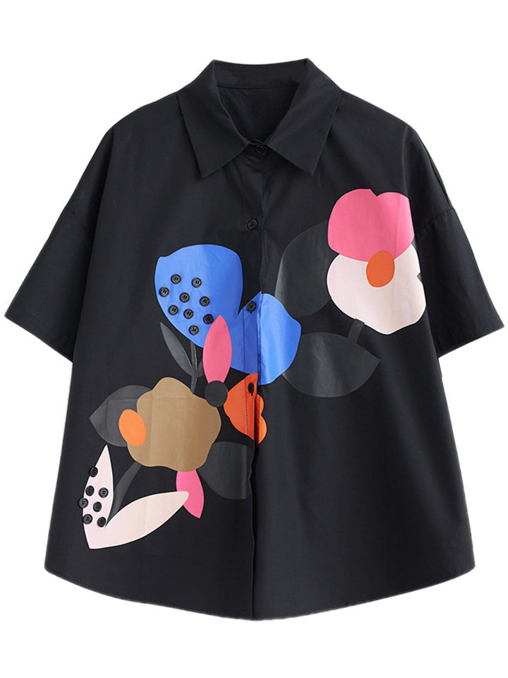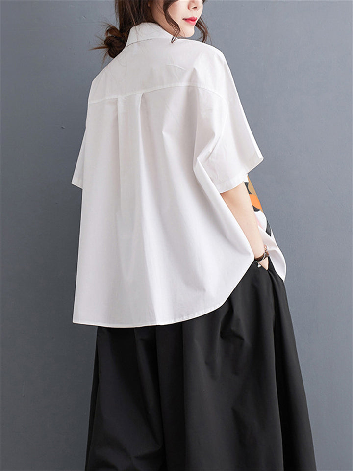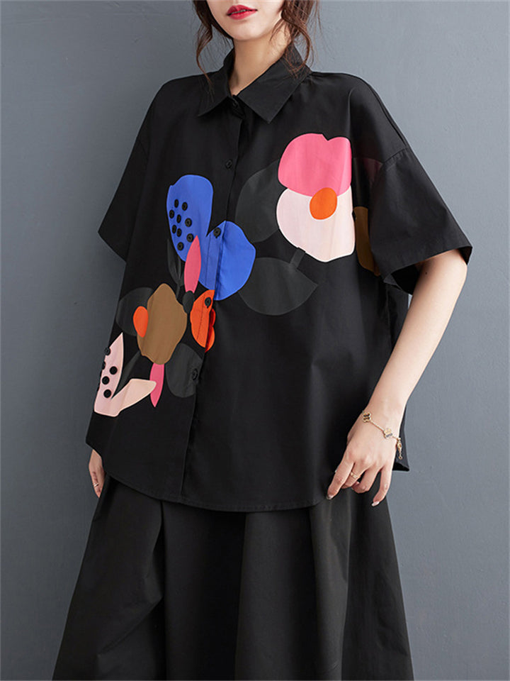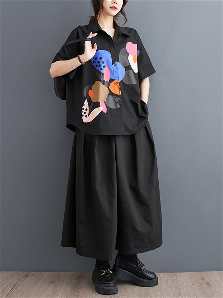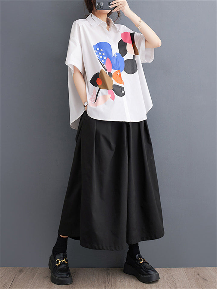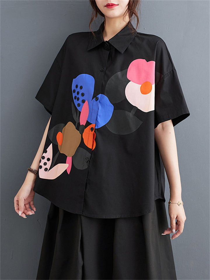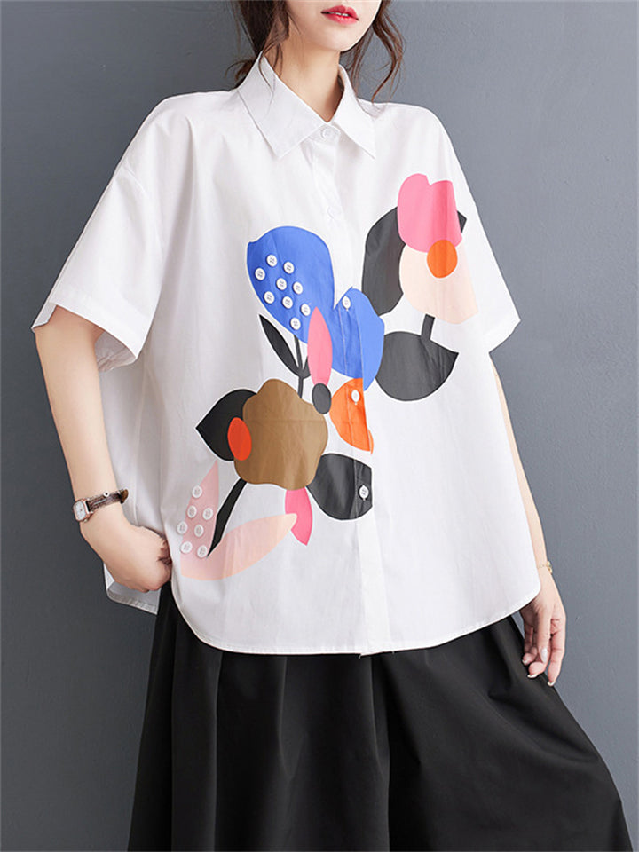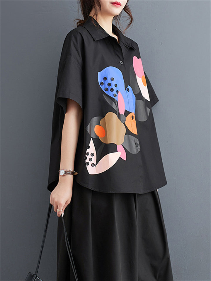 Fashion Personality Print Short Sleeve Button Shirt for Women