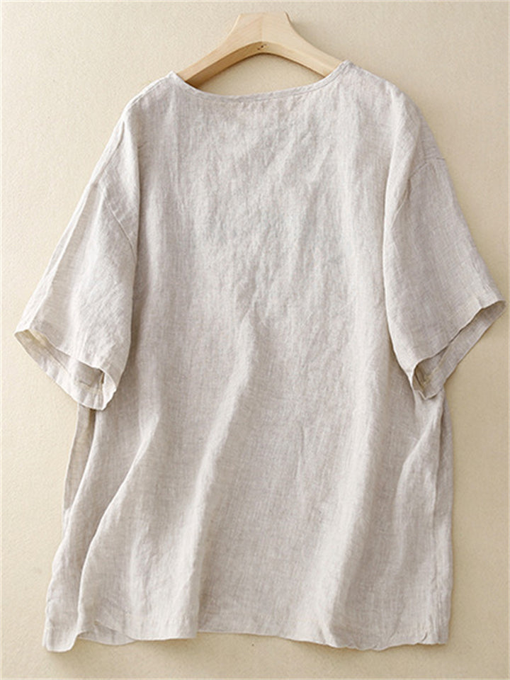 Women's Casual Retro Holiday Style Solid Color V Neck Short Sleeve Shirts
