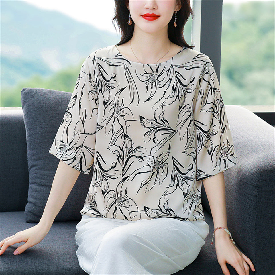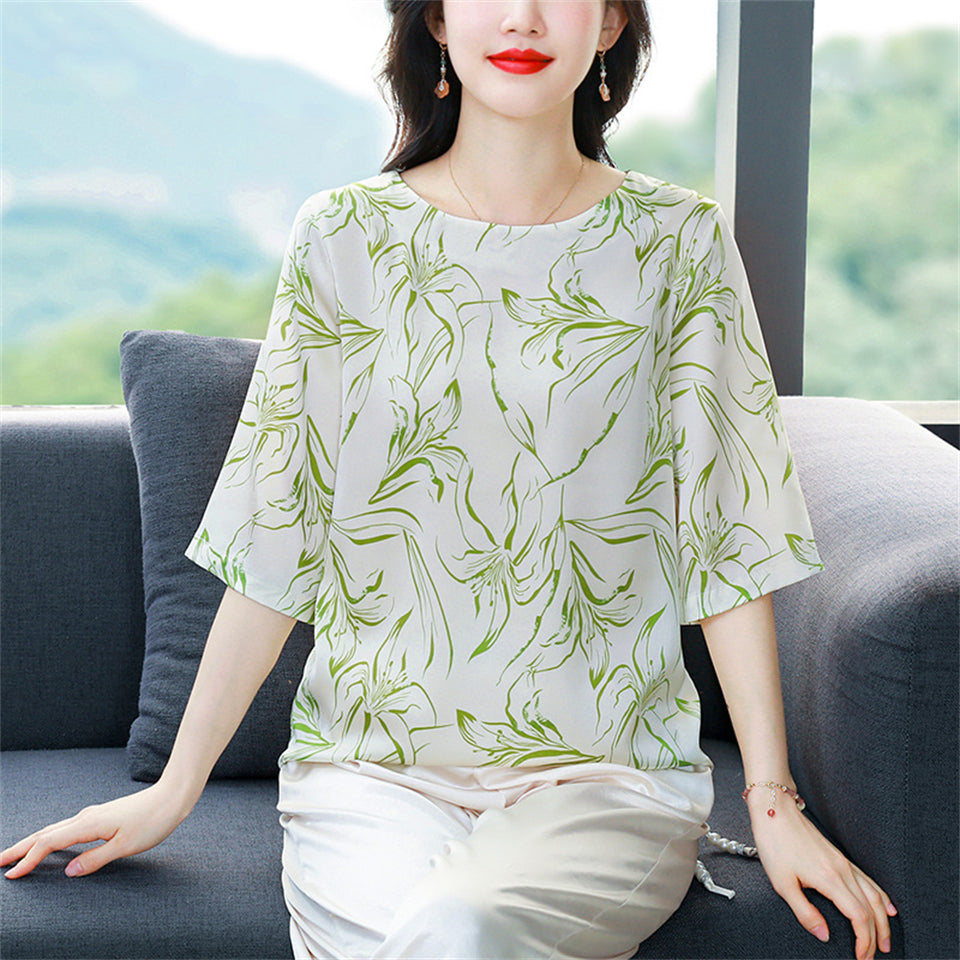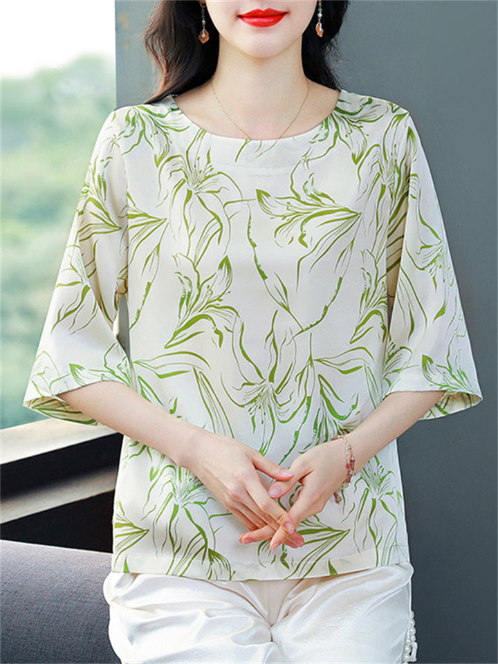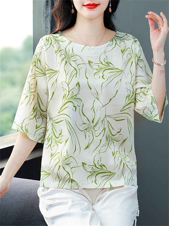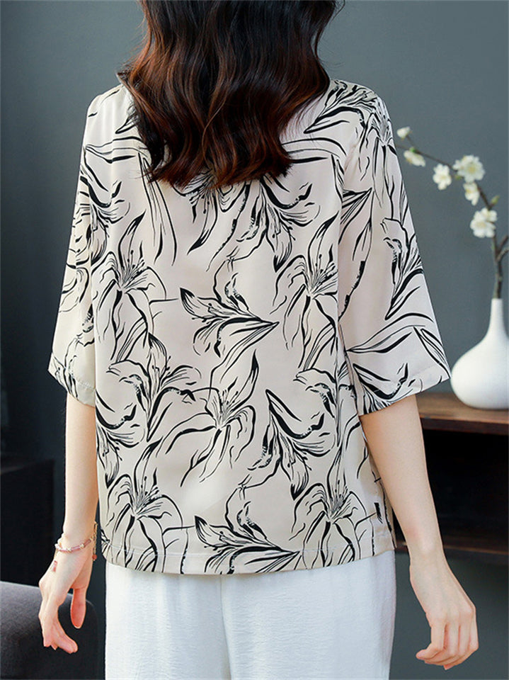 Female Elegant Summer Print O-Neck Half Sleeve Shirt