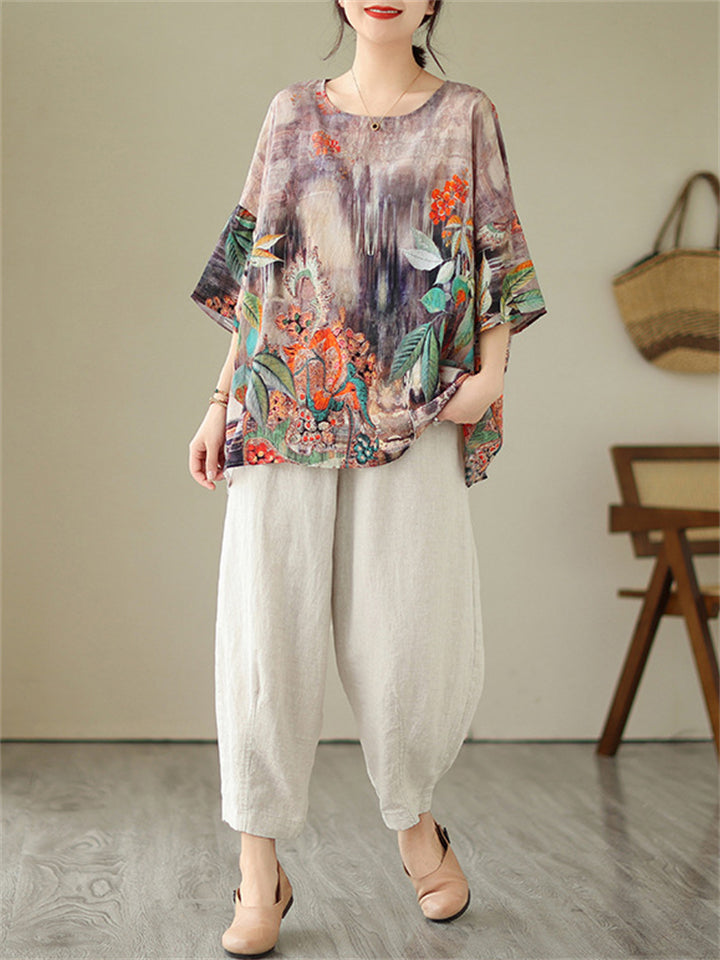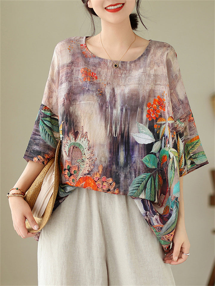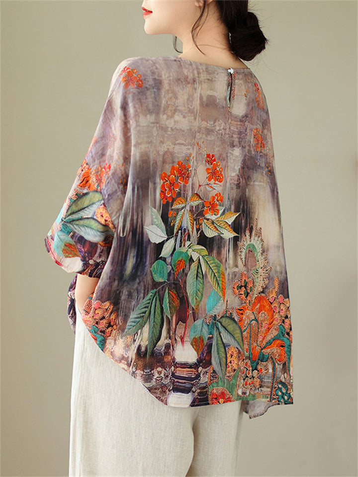 Summer Bohemian Style V Neck Print Vacation Shirt for Women