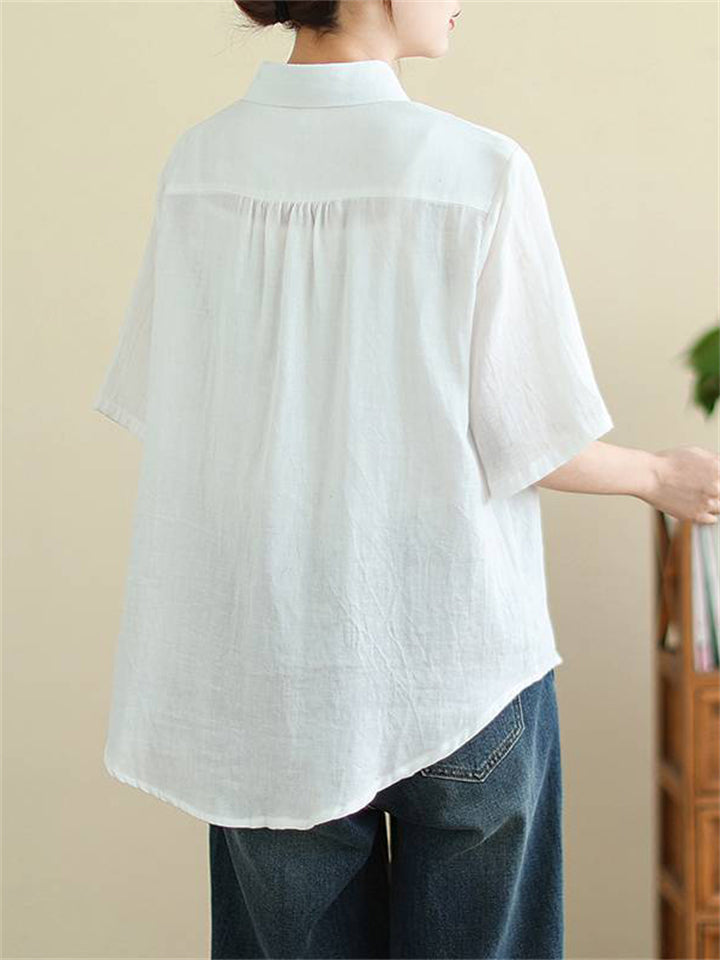Women's Summer White Solid Color Embroidered Short Sleeve Shirts