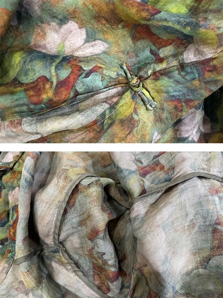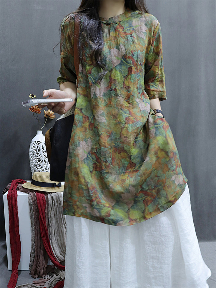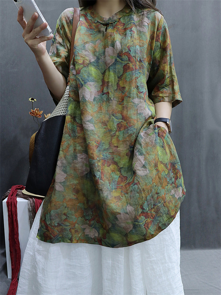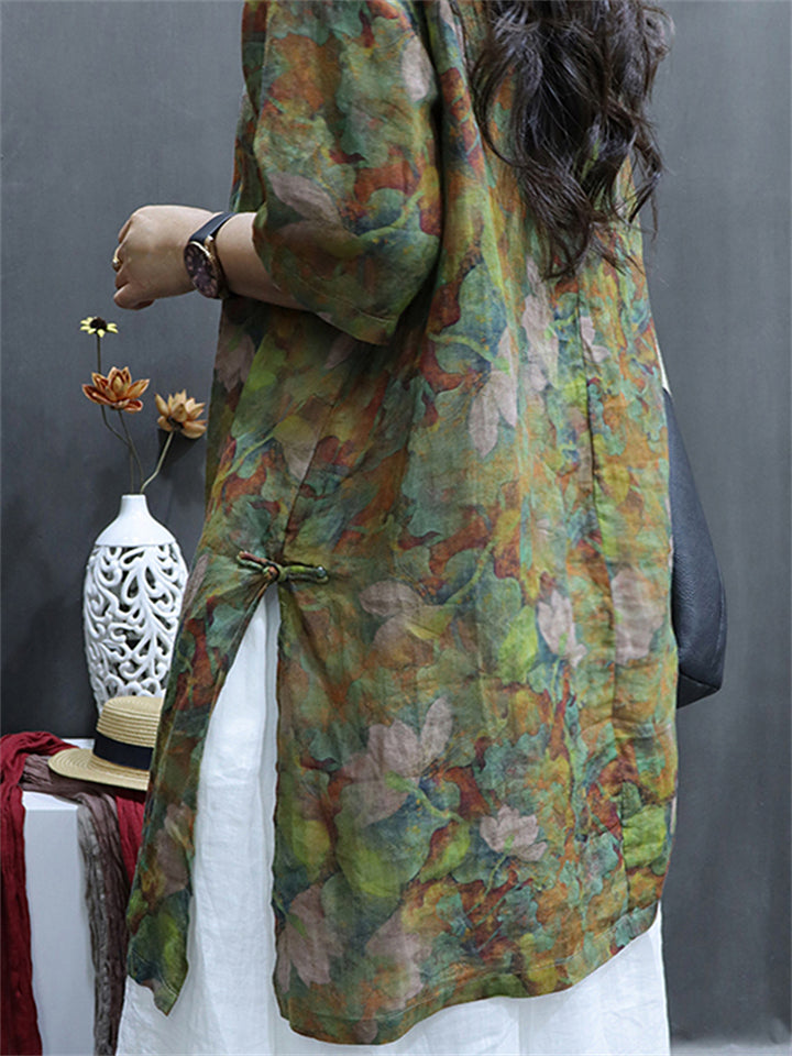 Female Mid-Length Floral Printed Chinese Button Knot Shirts