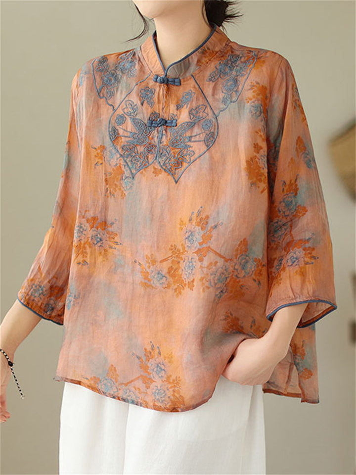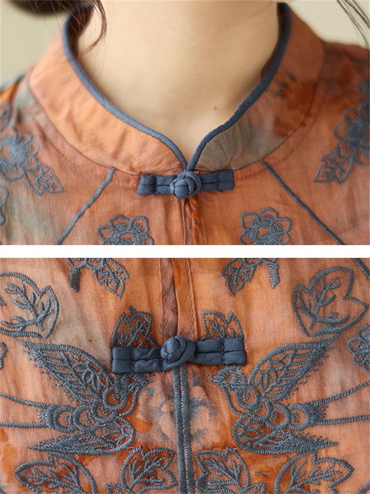 Women's Flower Embroidery Cheongsam Shirt