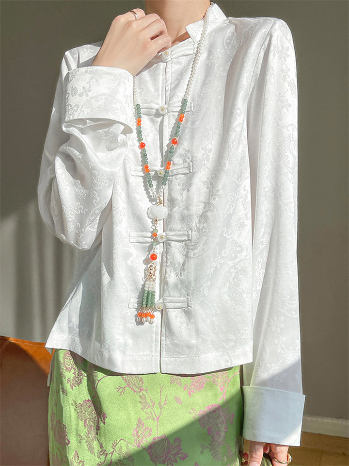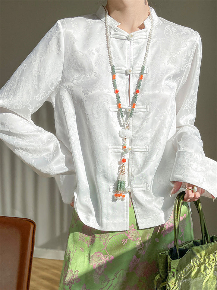 Female Spring Luxury Elegant Jacquard Knot Button Shirt