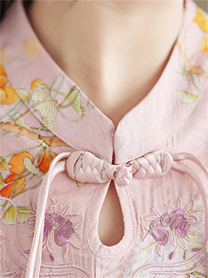Ancient Chinese Style Floral Embroidery Linen Shirt for Women