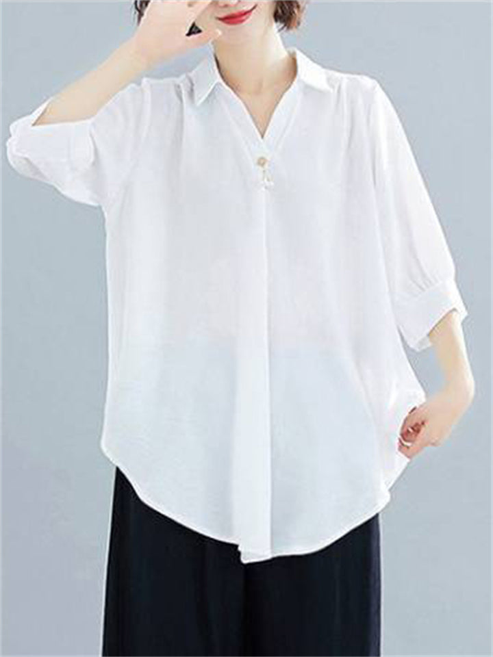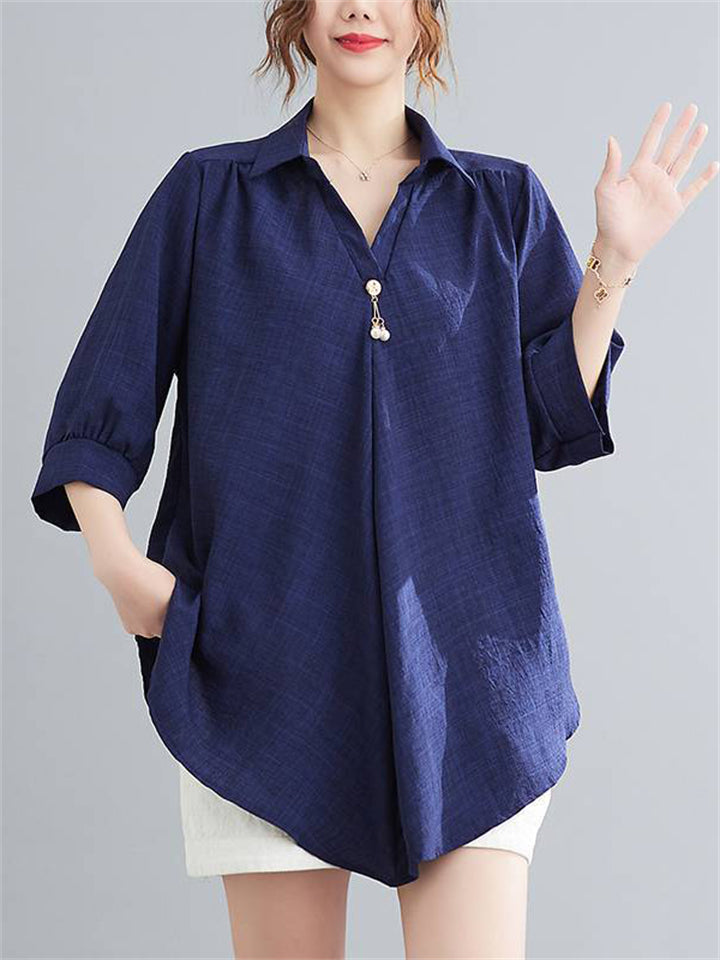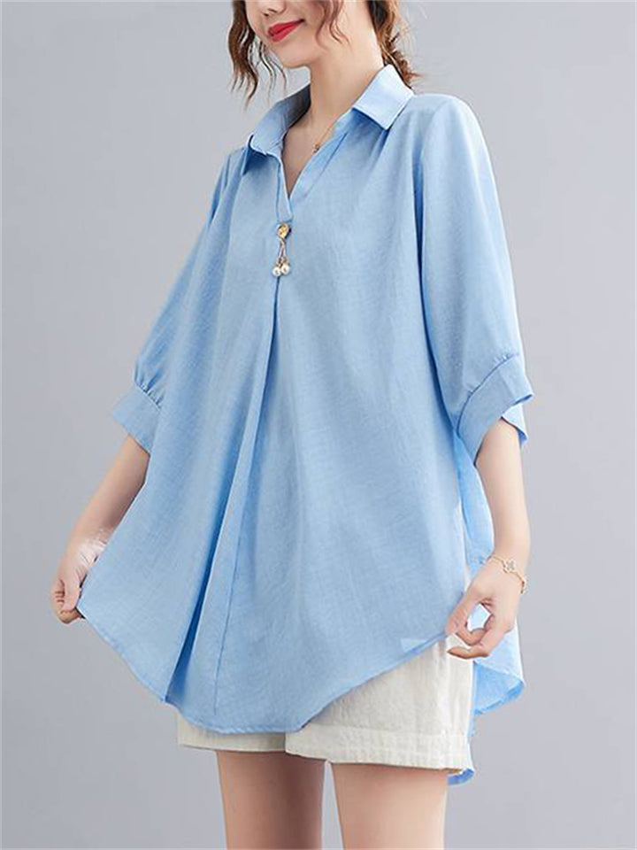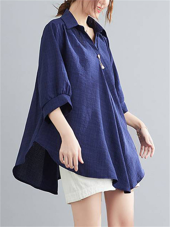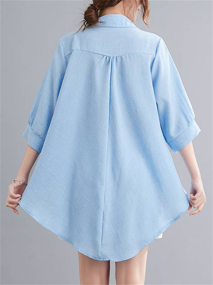 Women's Casual Solid Color 3/4 Sleeve Button Up Lapel Long Shirts