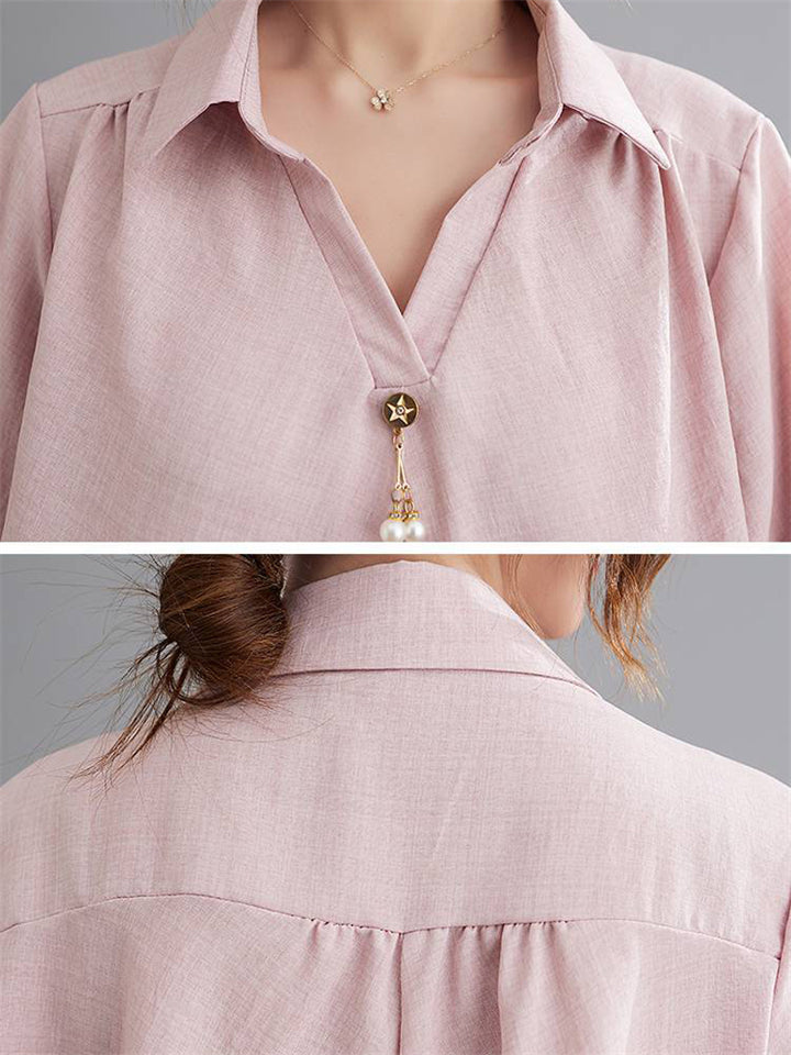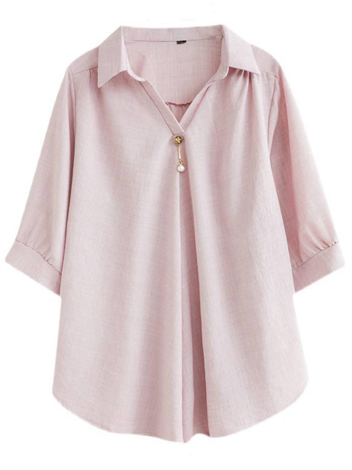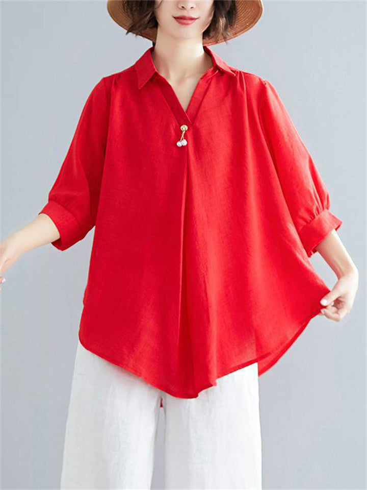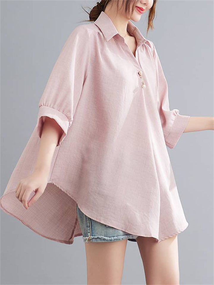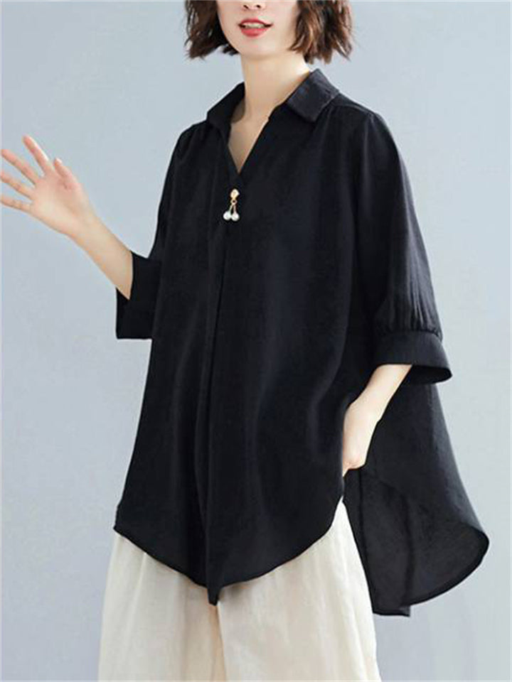Women's Casual Solid Color 3/4 Sleeve Button Up Lapel Long Shirts