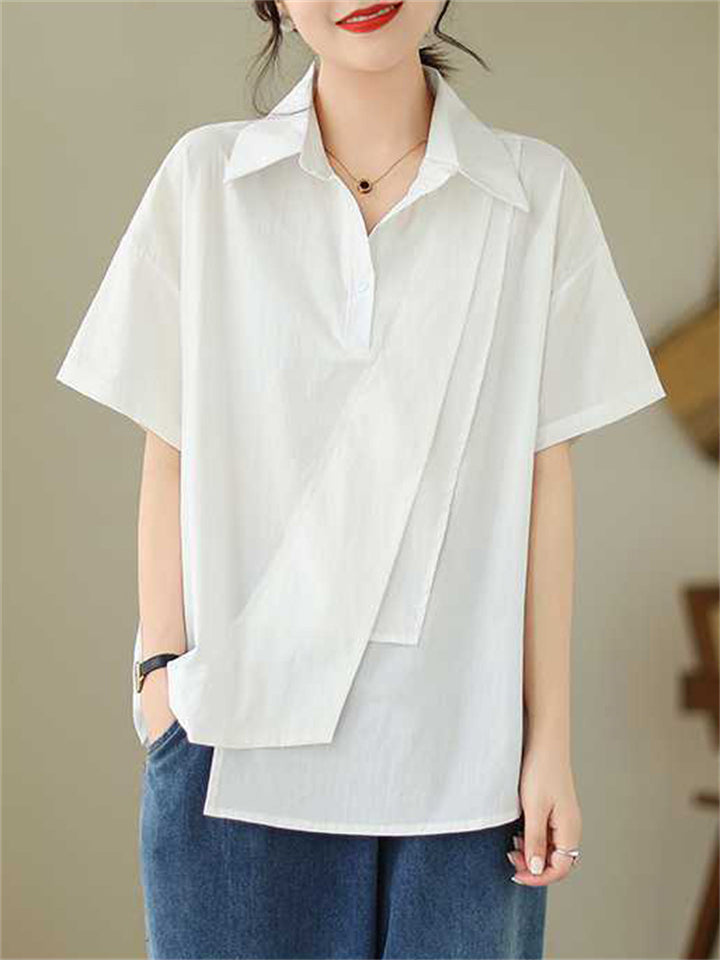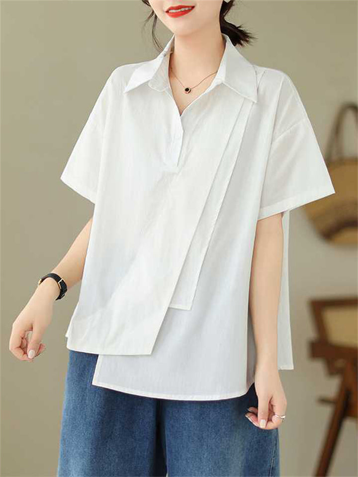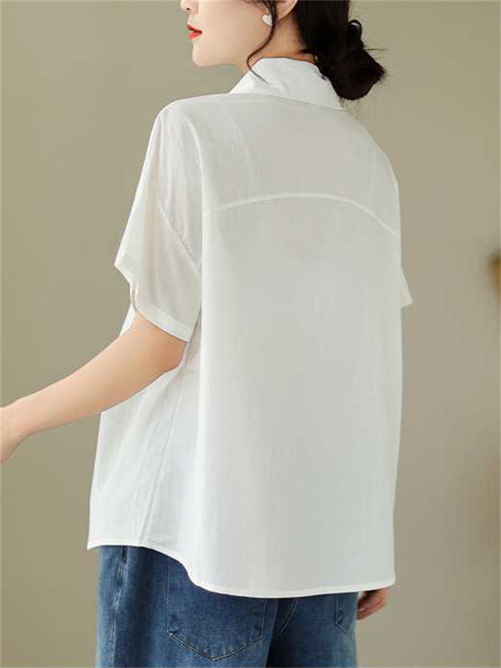 Women's Summer White Solid Color Embroidered Short Sleeve Shirts