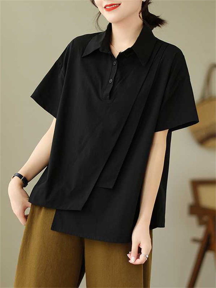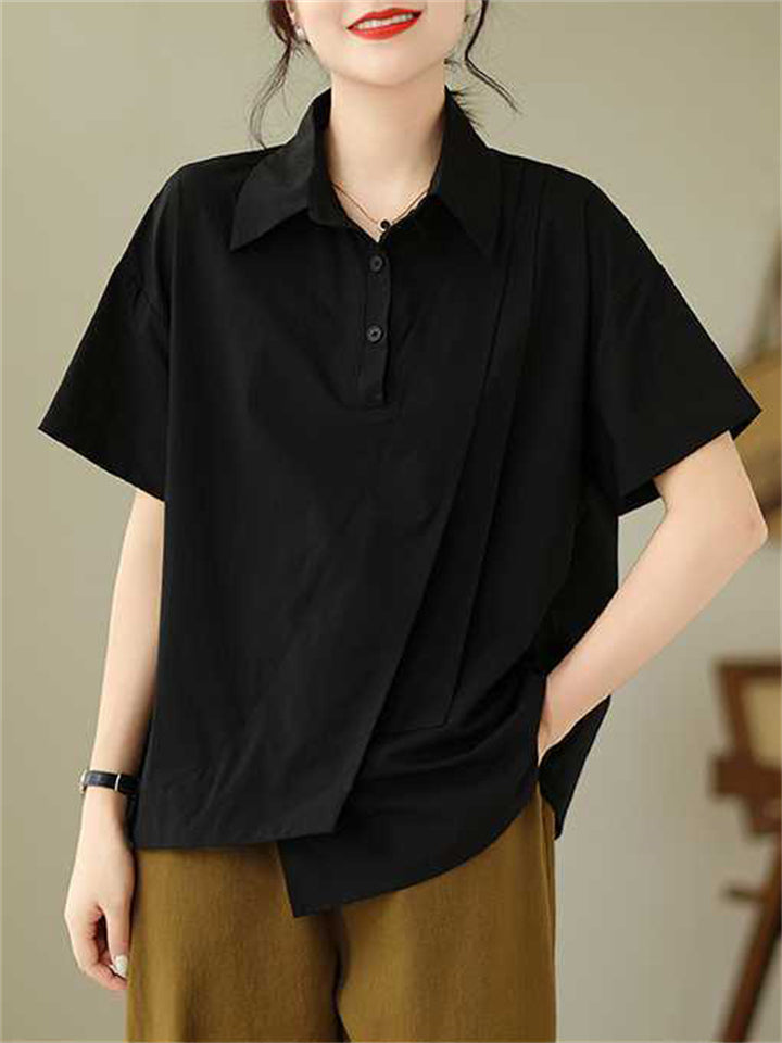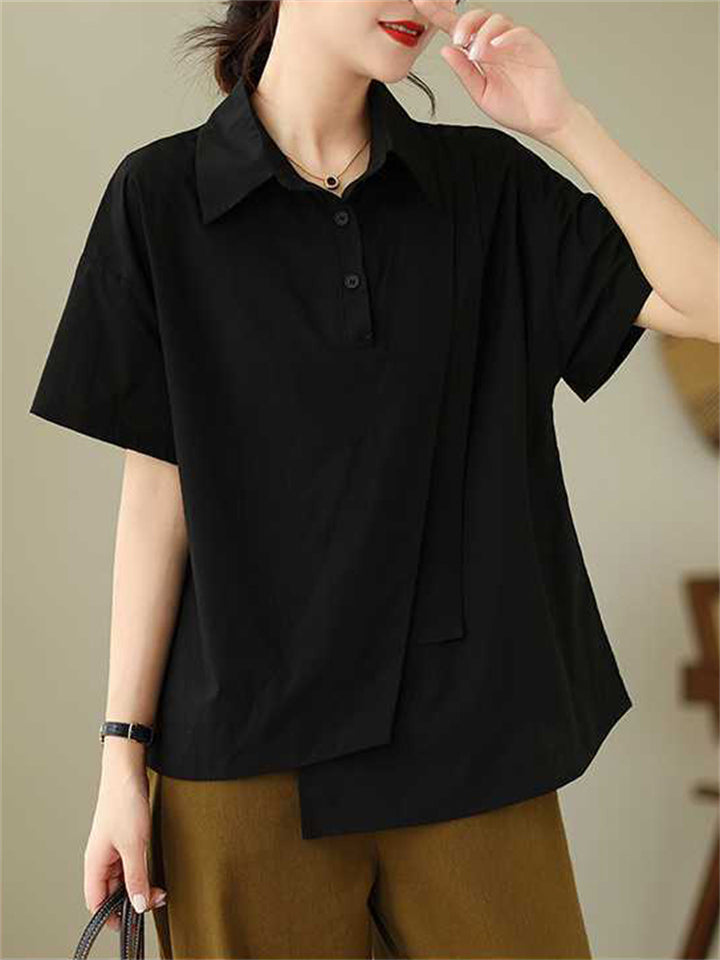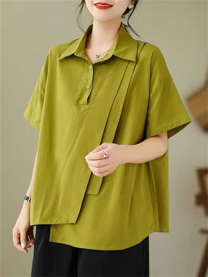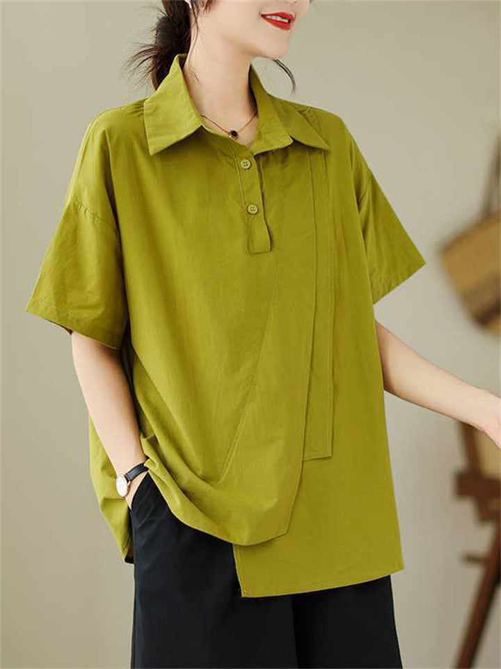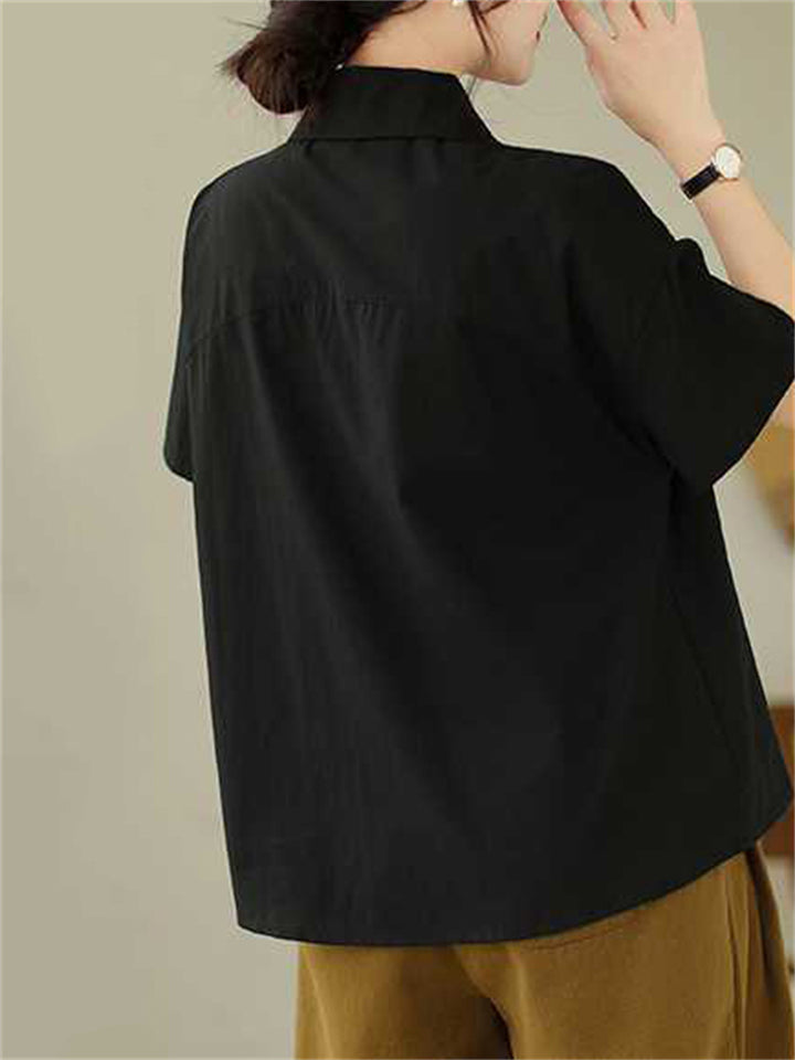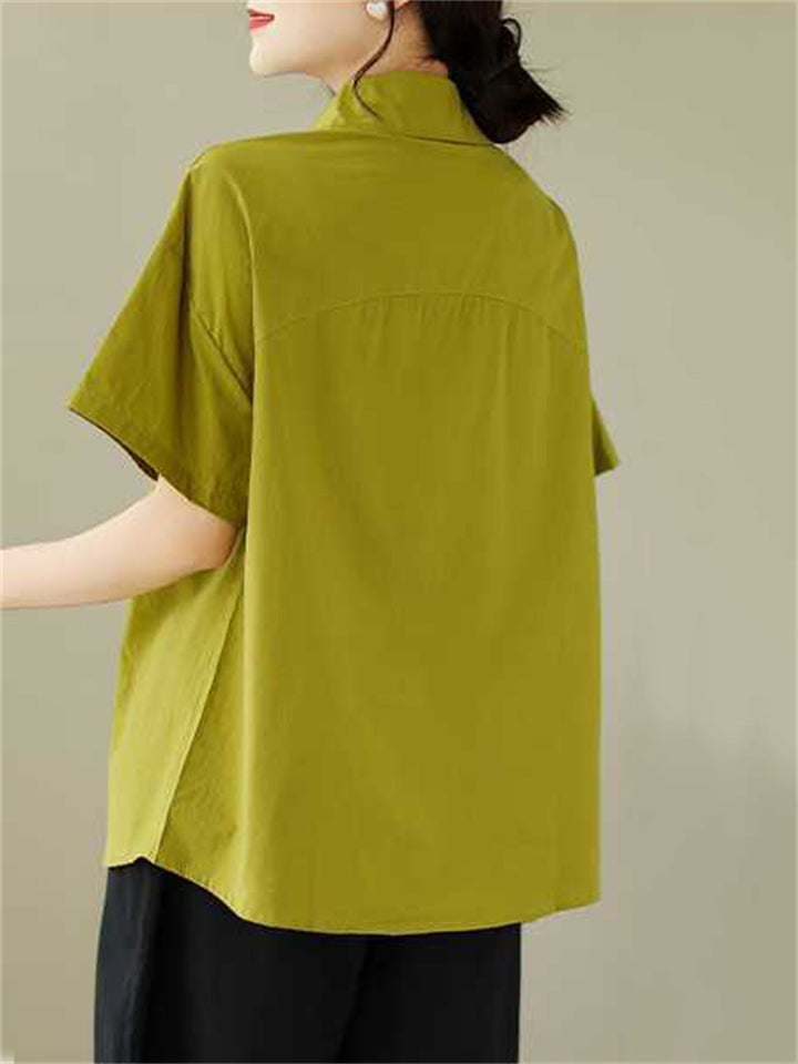 Women's Retro Casual Solid Color Button Up Lapel Cardigan Shirts