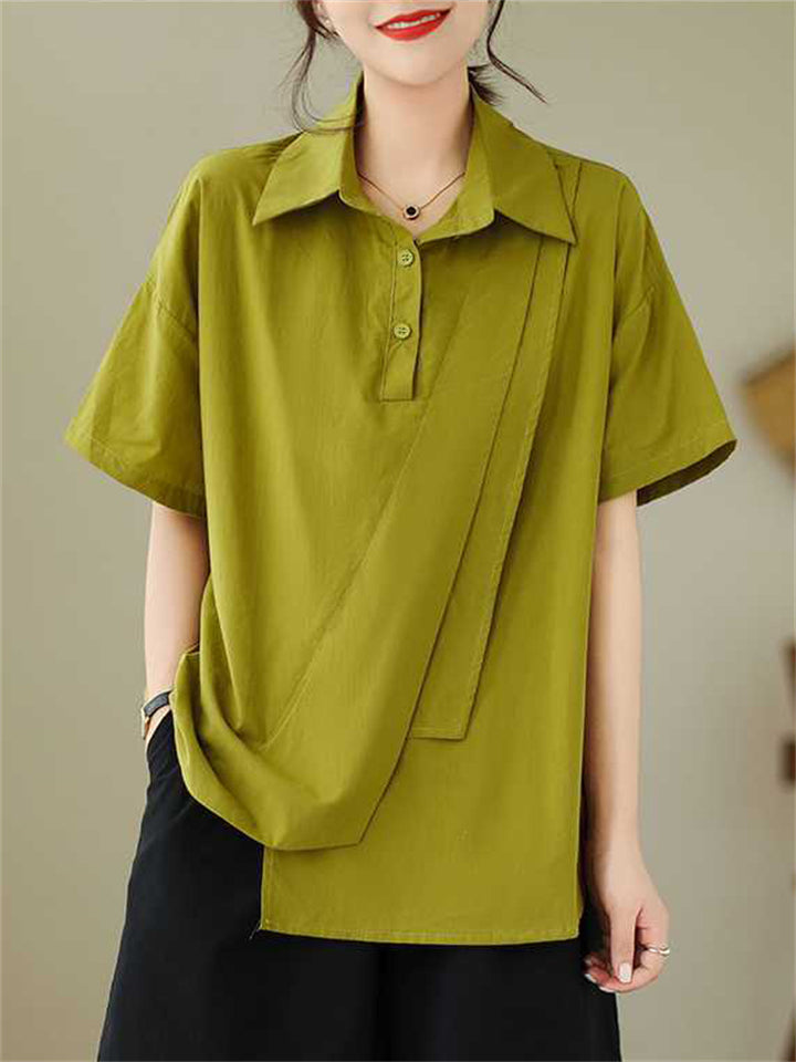 Women's Casual Retro Holiday Style Solid Color V Neck Short Sleeve Shirts