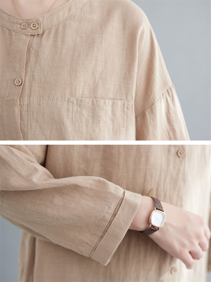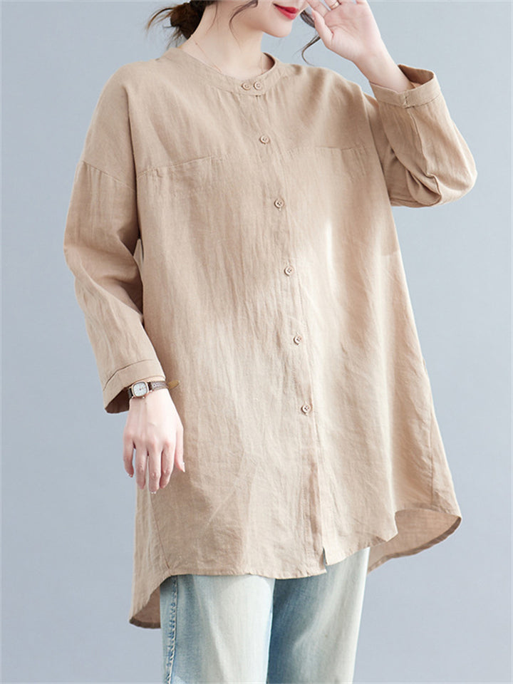 Khaki Comfortable Stand Collar Button Shirt for Women
