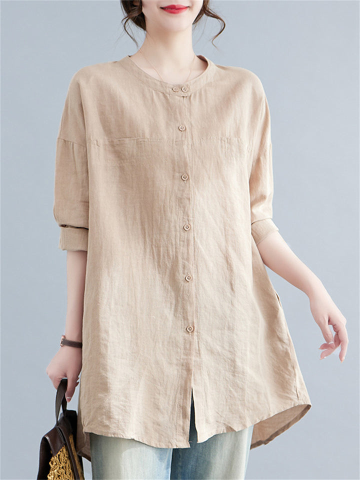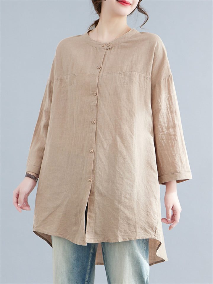 Women's Casual Solid Color 3/4 Sleeve Button Up Lapel Long Shirts