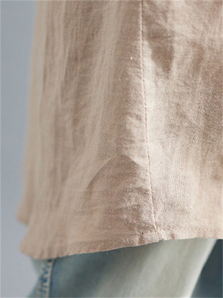 Ancient Chinese Style Floral Embroidery Linen Shirt for Women