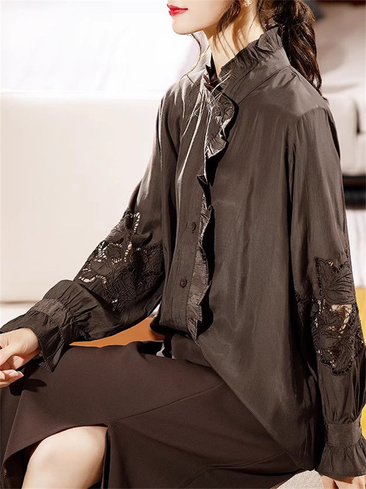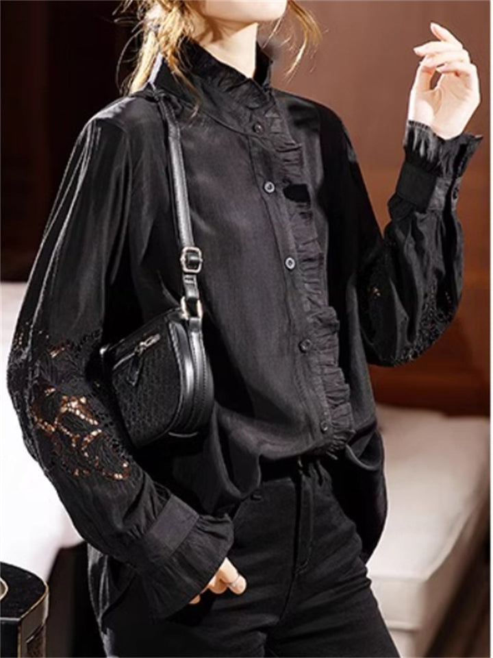Korean Style Women's Long Sleeve Hollow Embroidery Shirts