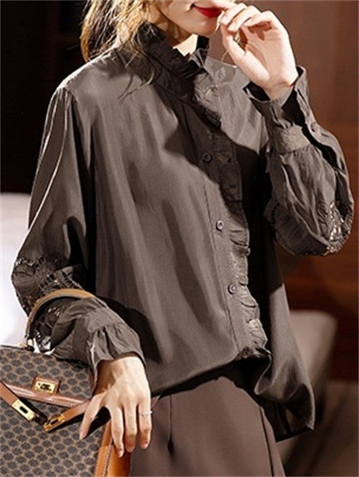 Women's Casual Solid Color Single Breasted Lapel Cardigan Shirts