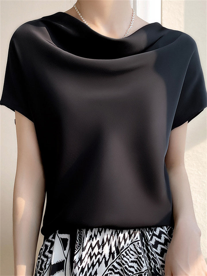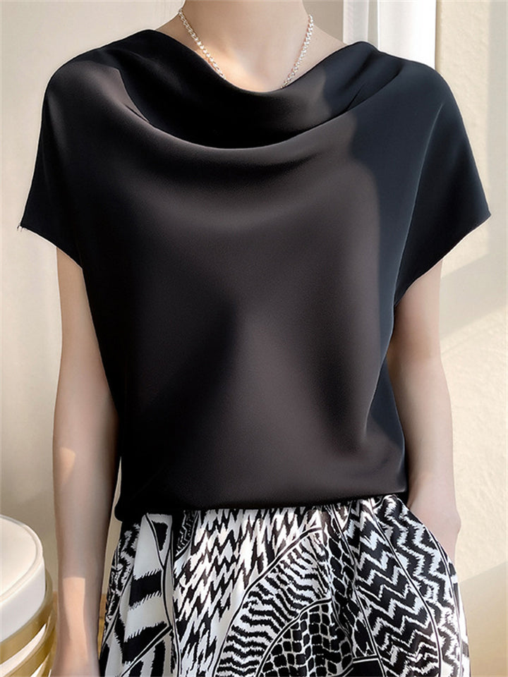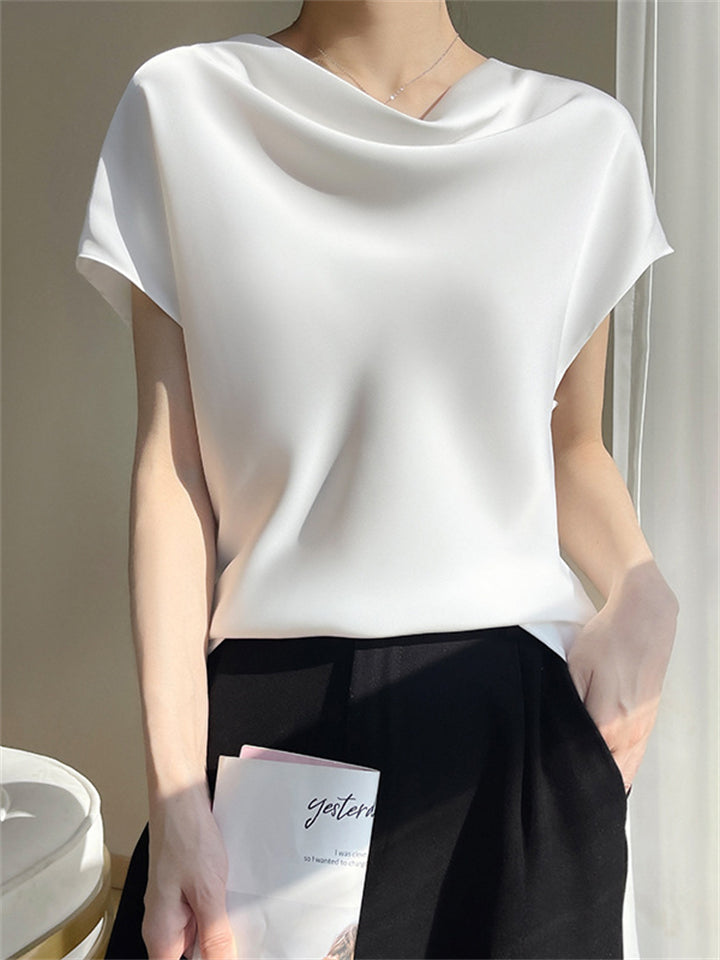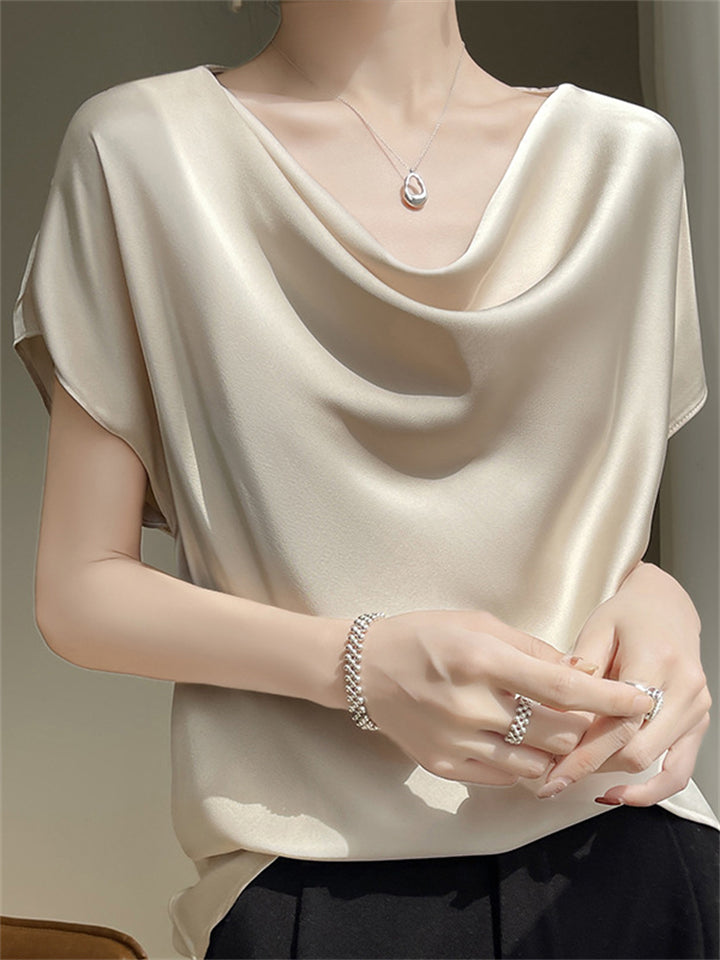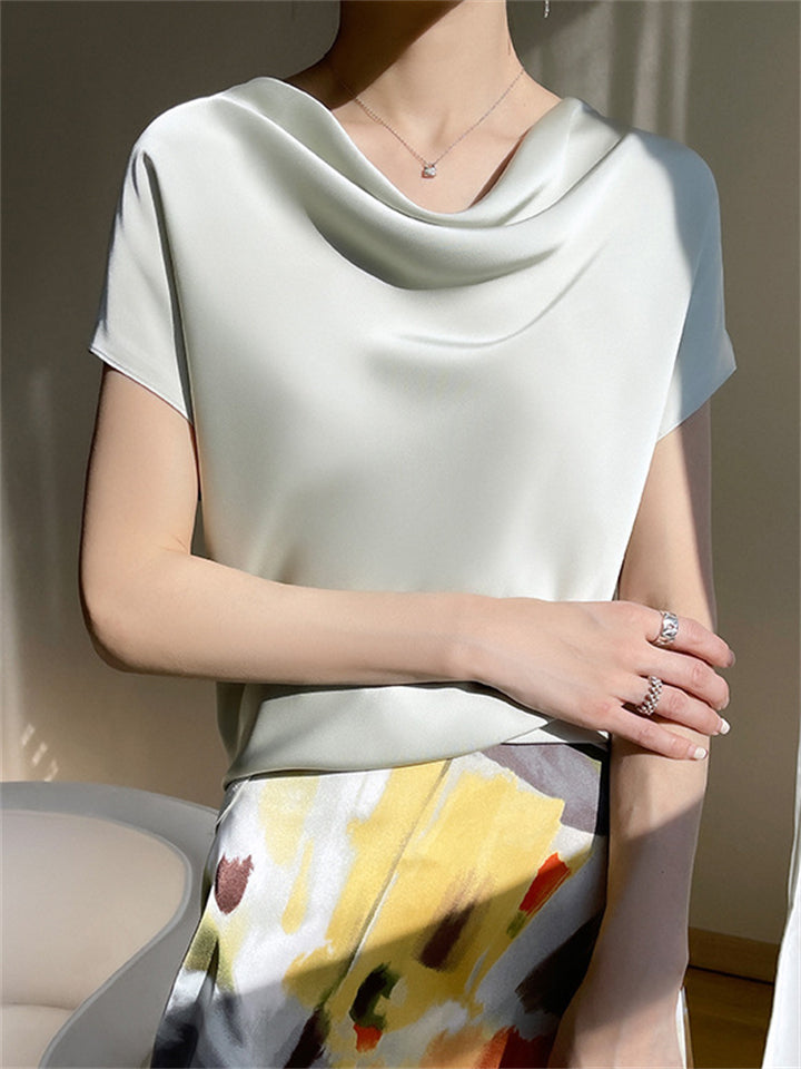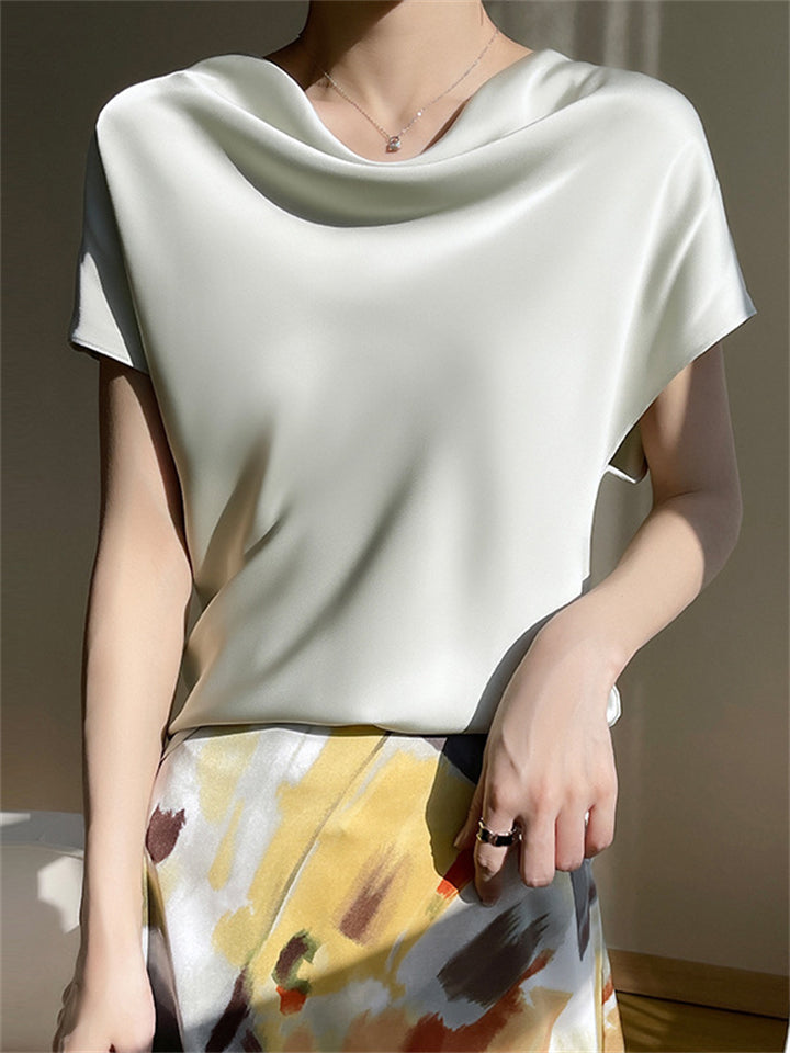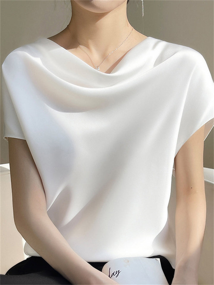 Ladies French Style Elegant Short Sleeve Satin Shirts