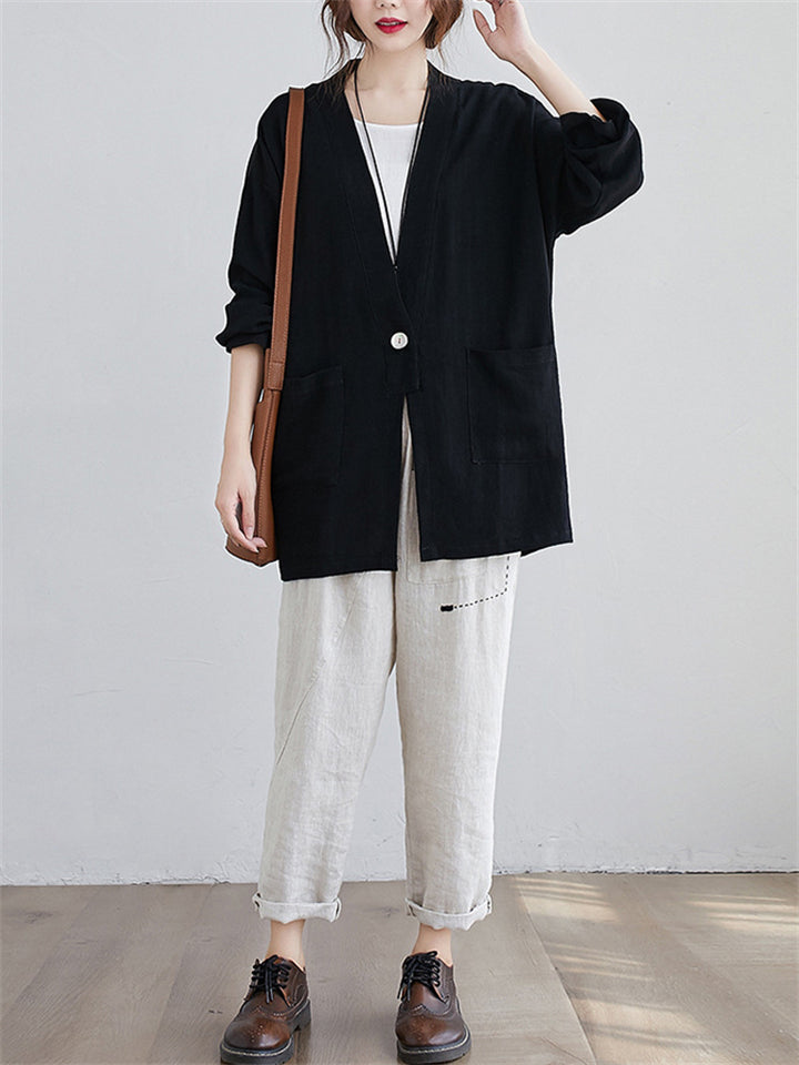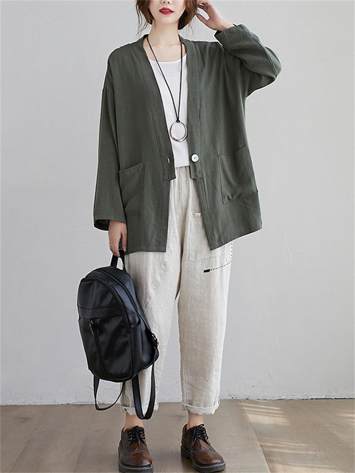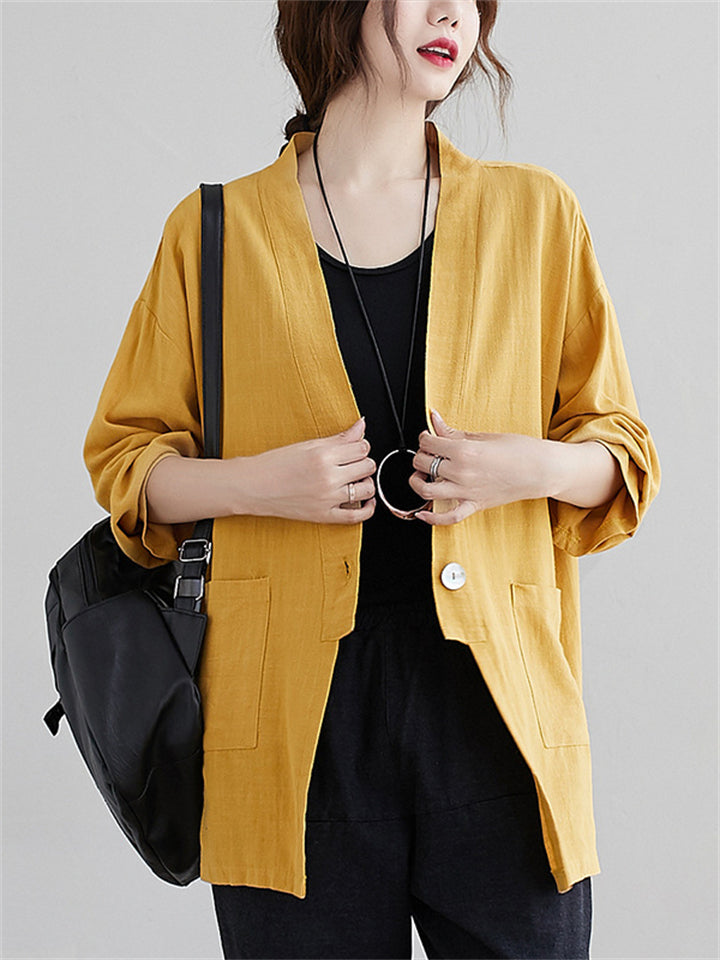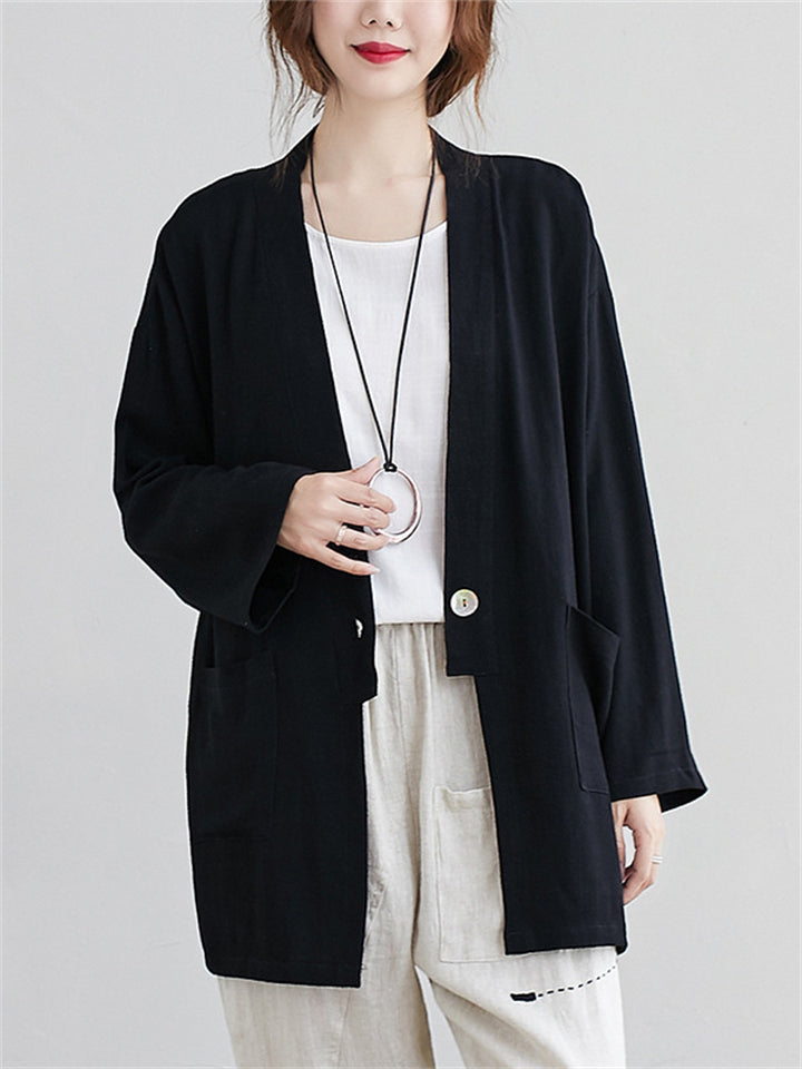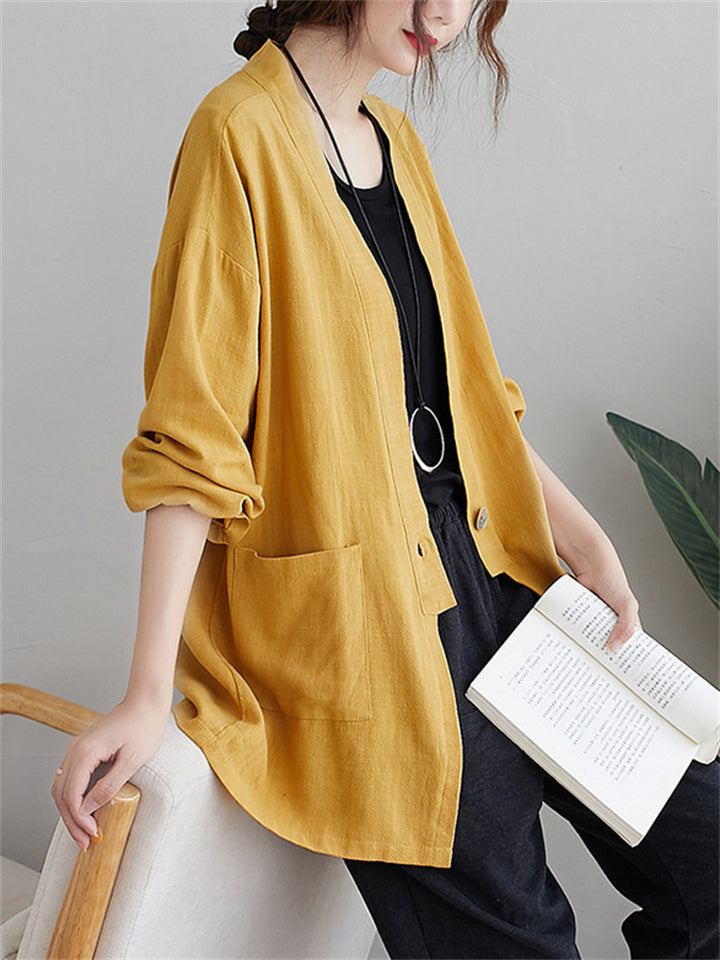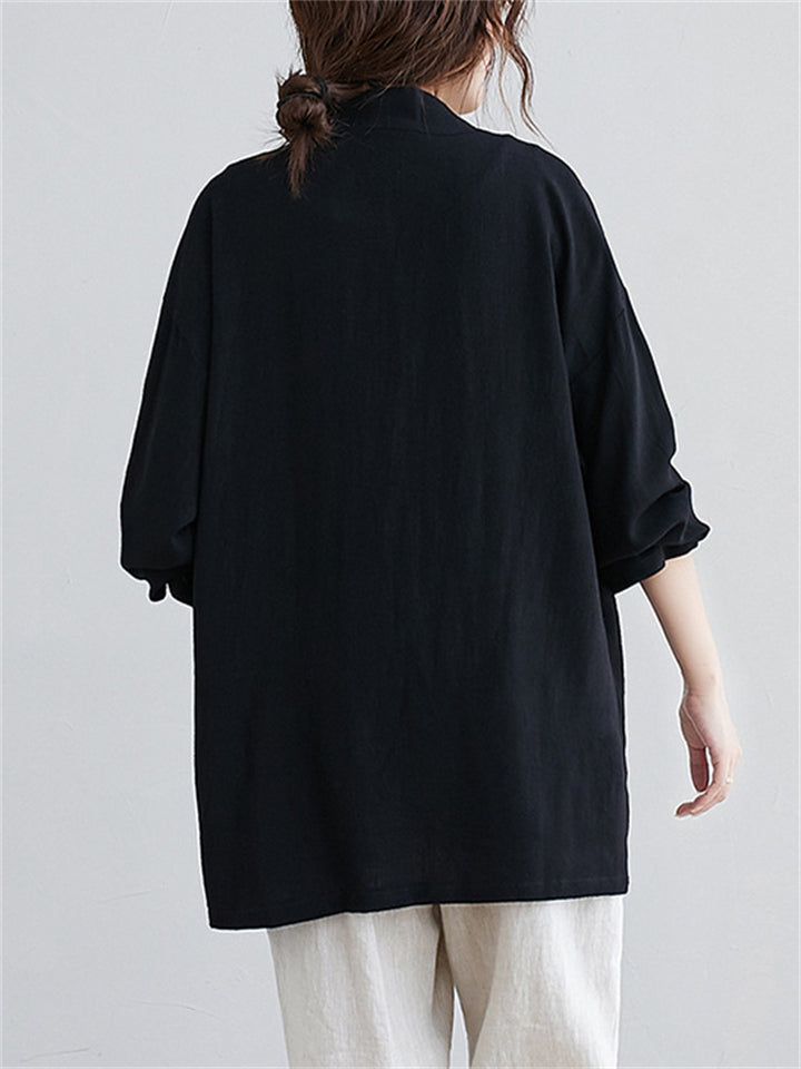 Women's Retro Casual Solid Color Button Up Lapel Cardigan Shirts