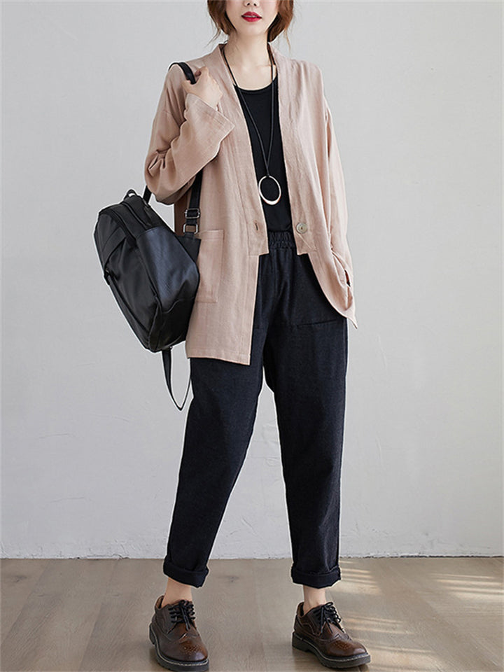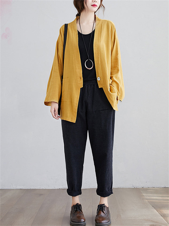 Women's Casual Solid Color Single Breasted Lapel Cardigan Shirts