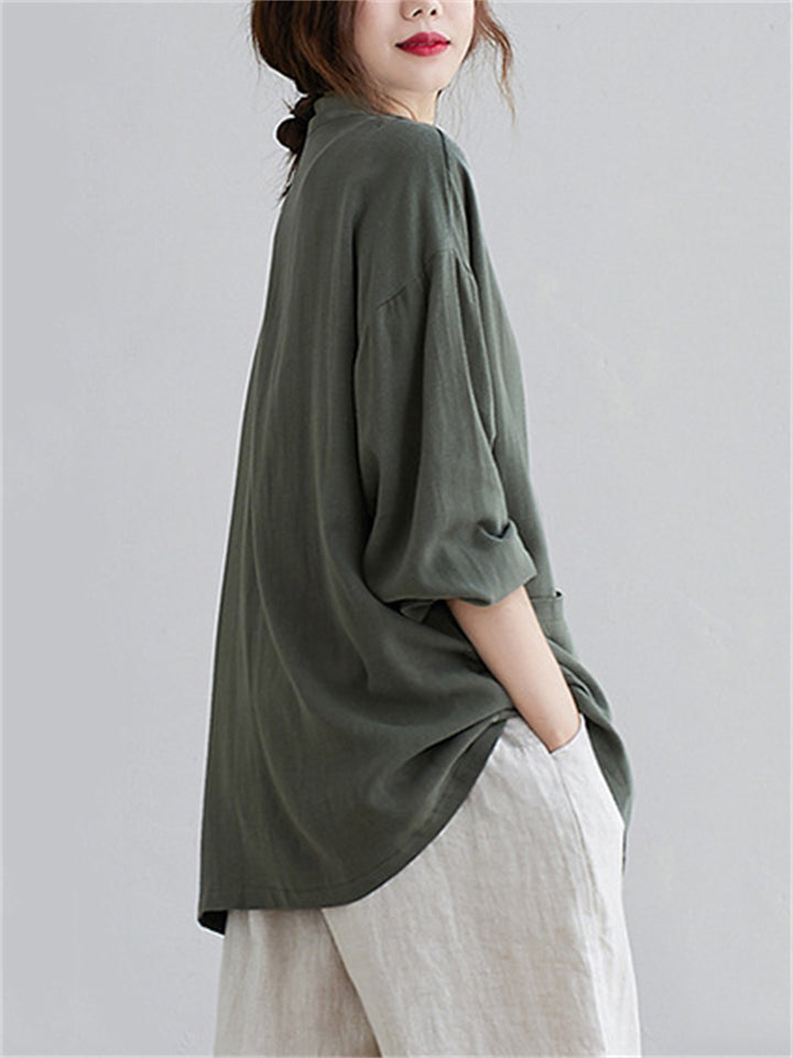 Women's Casual Solid Color 3/4 Sleeve Button Up Lapel Long Shirts