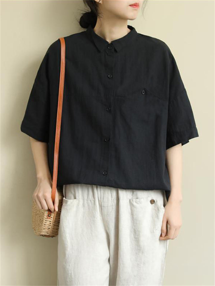 Ladies Simple Leisure Short Sleeve Lapel Shirts