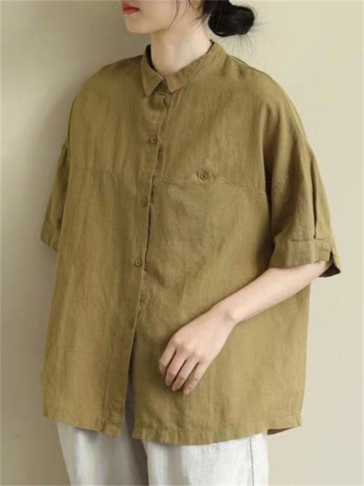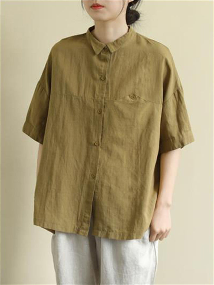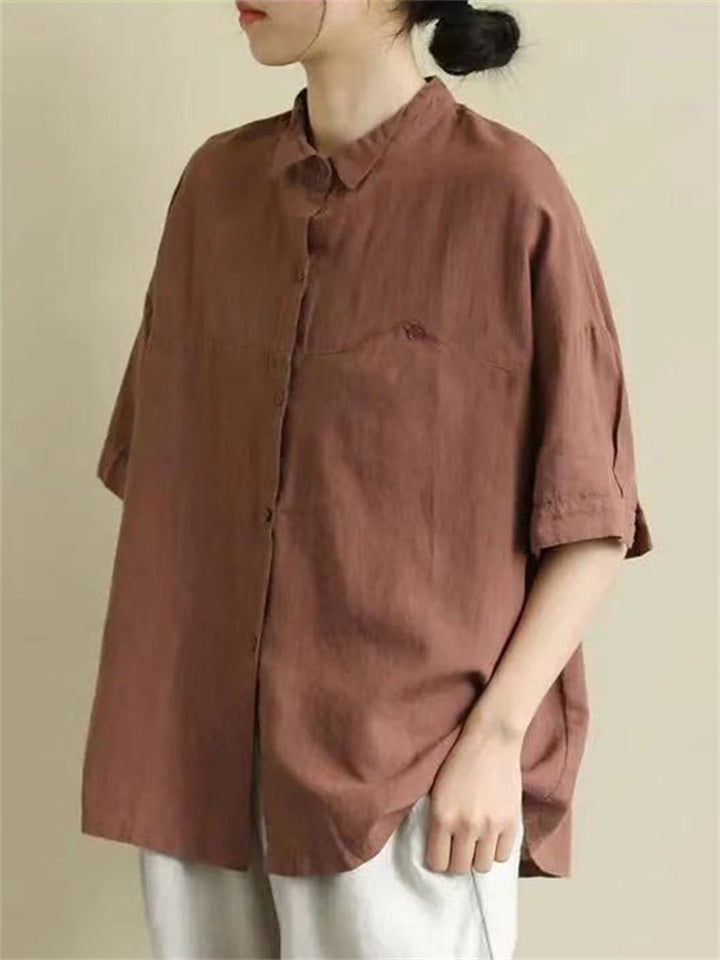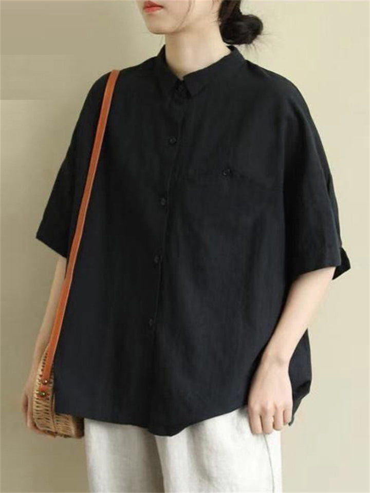 Women's Retro Casual Solid Color Button Up Lapel Cardigan Shirts
