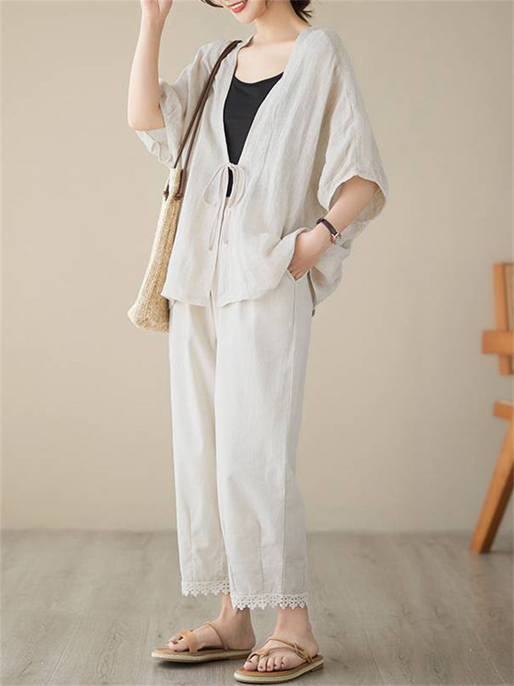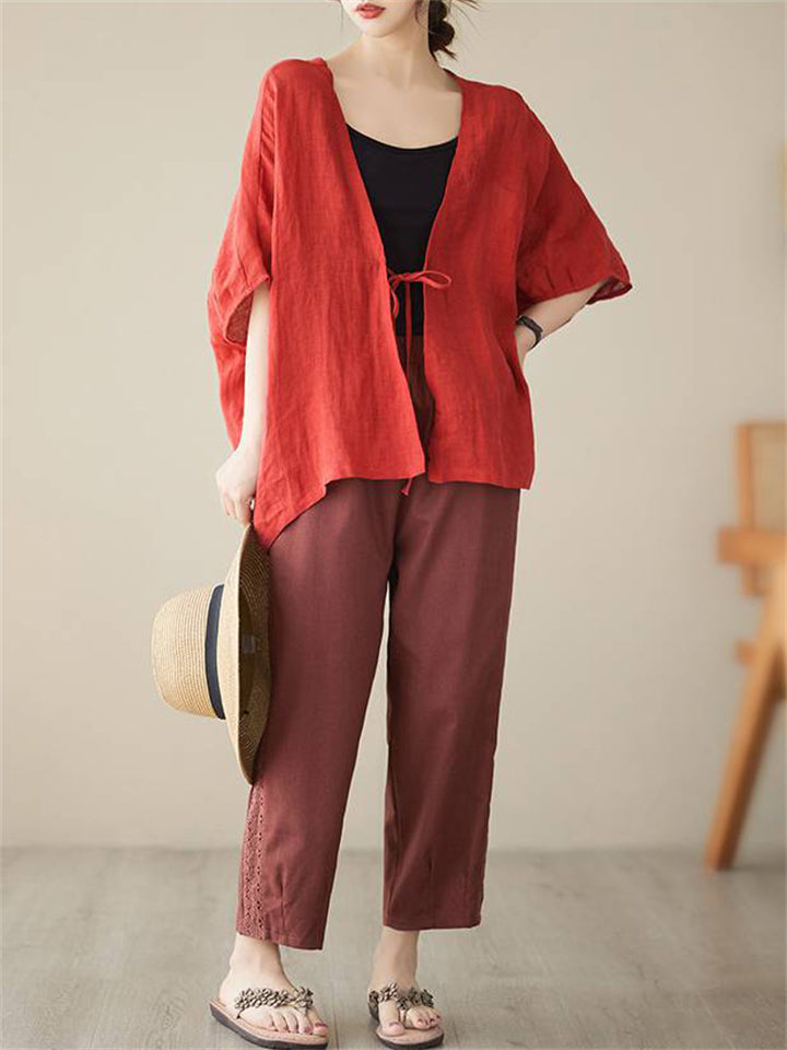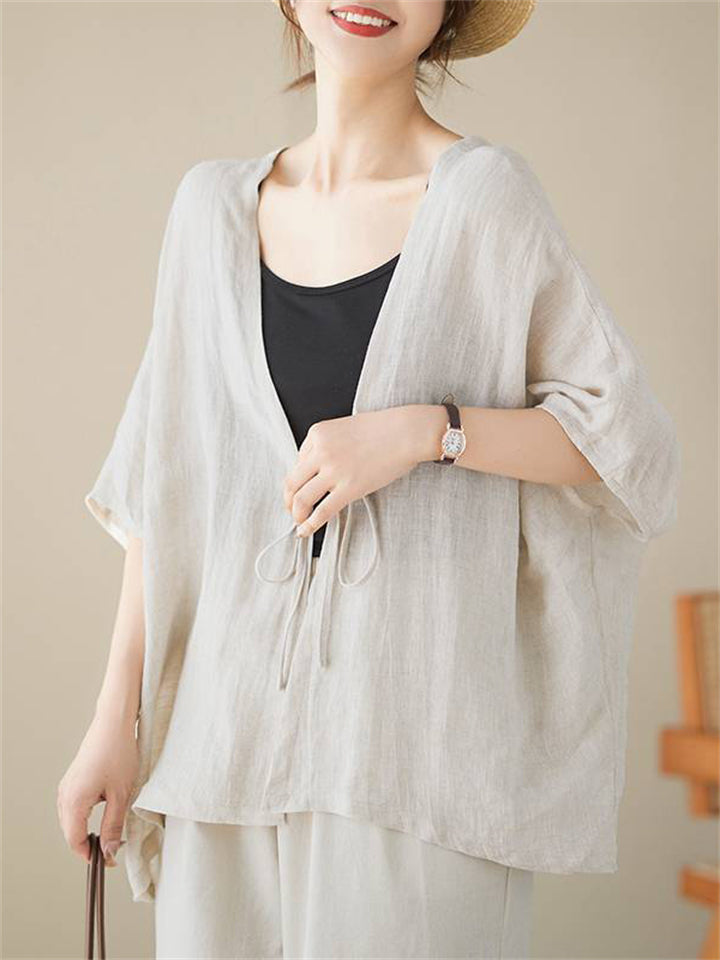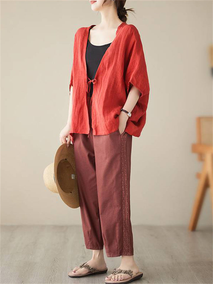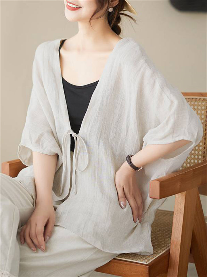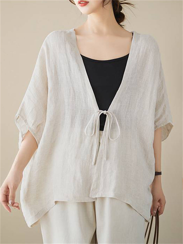 Ladies Summer Casual Lace-Up Batwing Sleeve Shirts