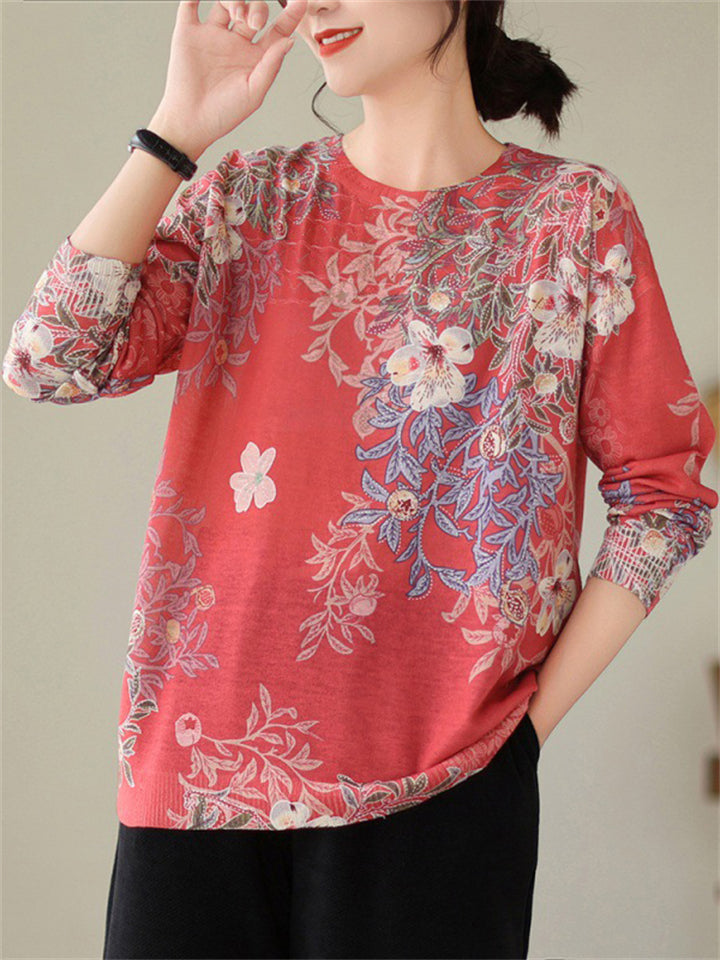 Women's Casual Retro Printed Long Sleeve Lapel Shirts