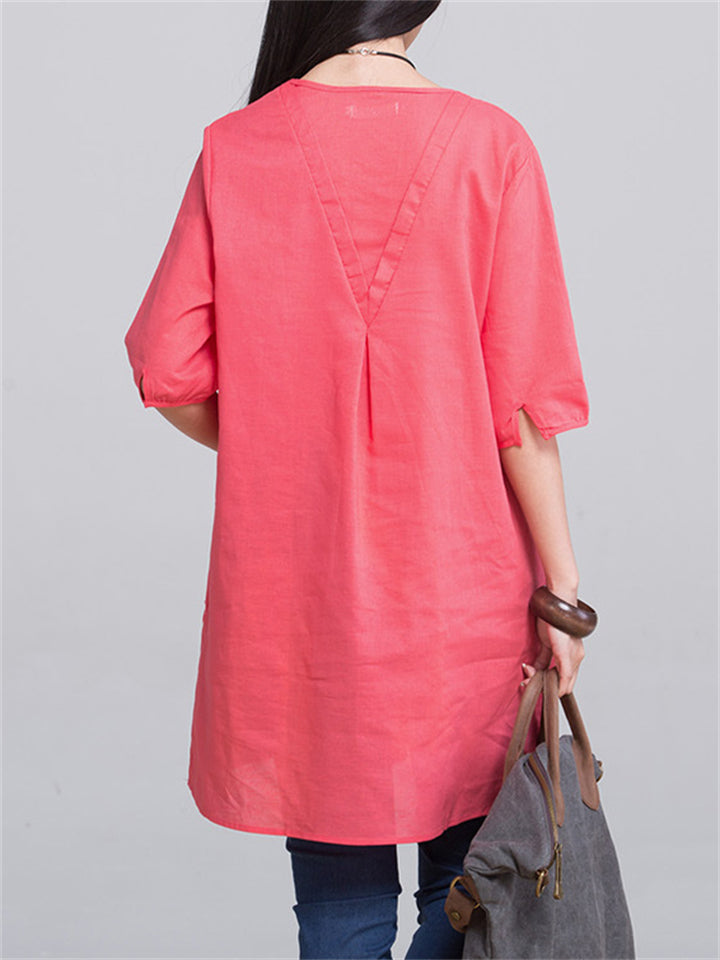 Women's Casual Retro Holiday Style Solid Color V Neck Short Sleeve Shirts