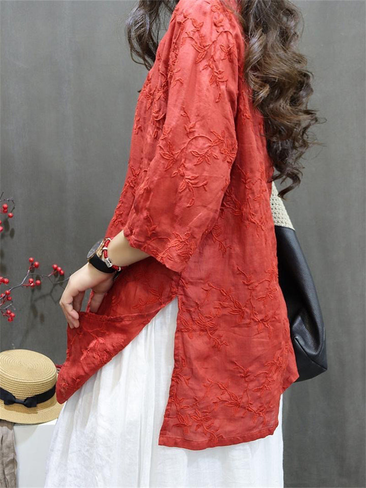 Ancient Chinese Style Floral Embroidery Linen Shirt for Women