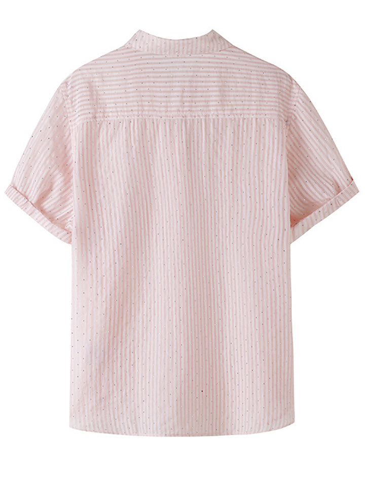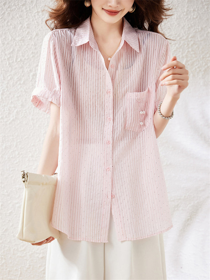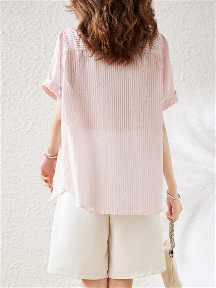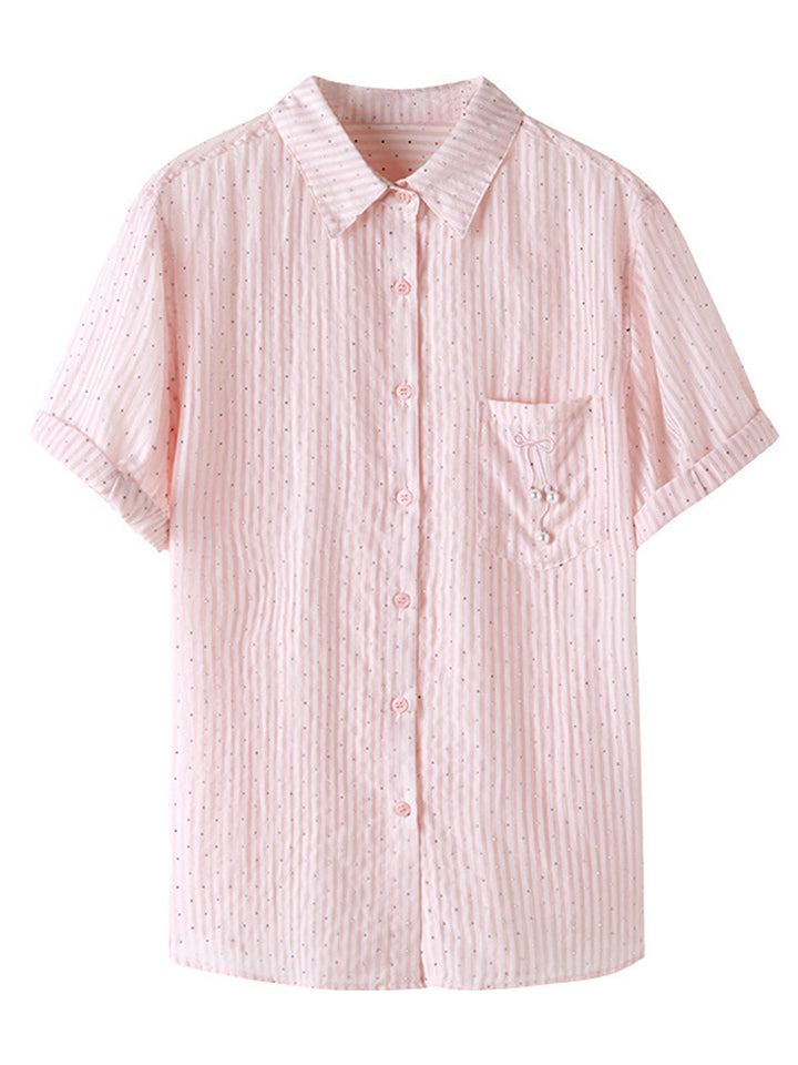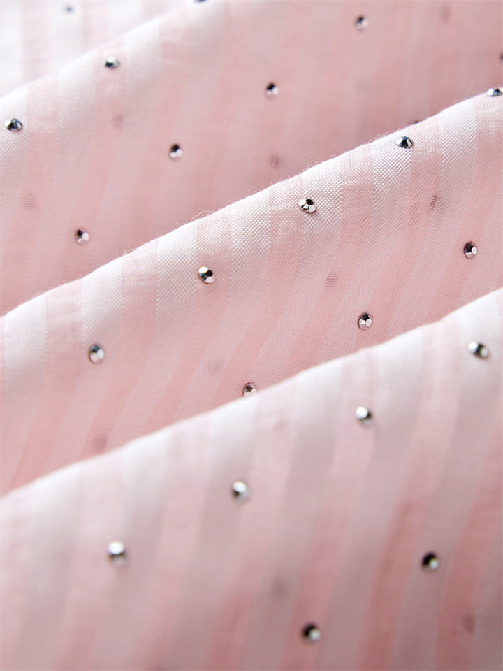 Light Pink Stripe Rhinestone Cozy Tencel Shirt for Women