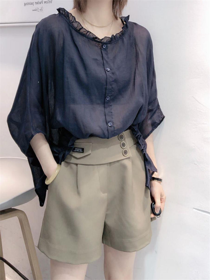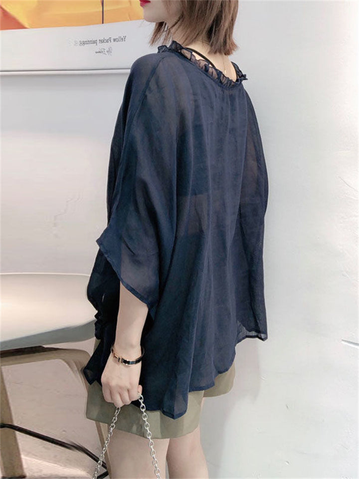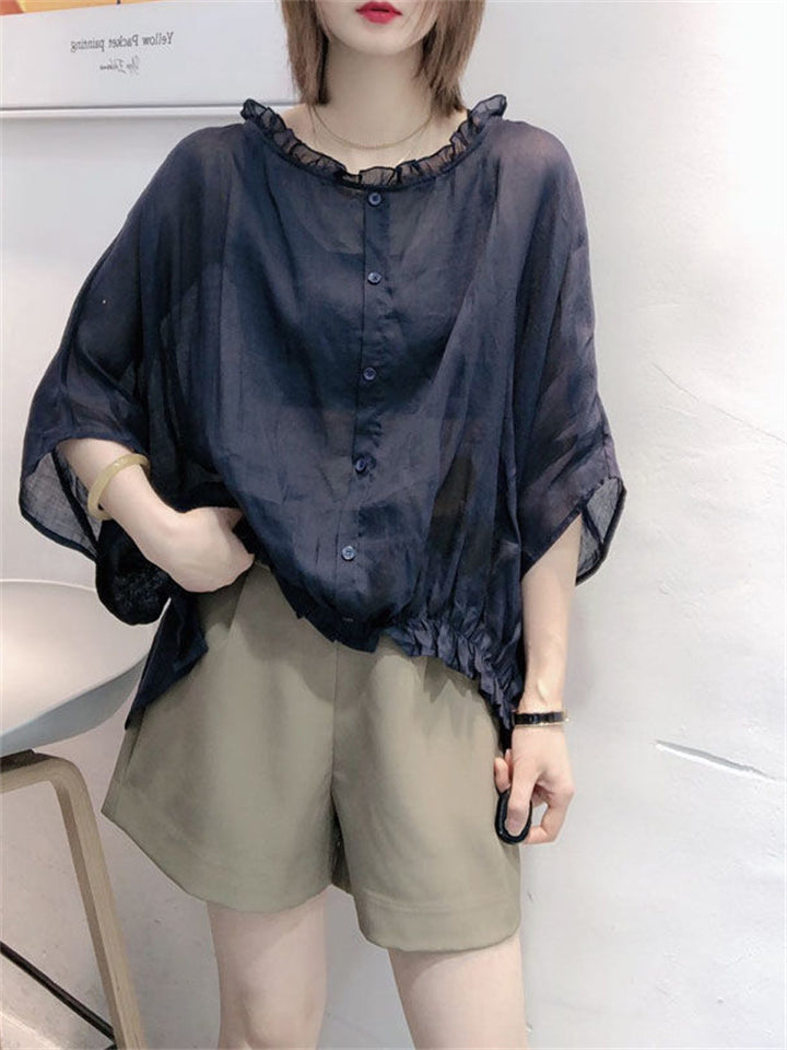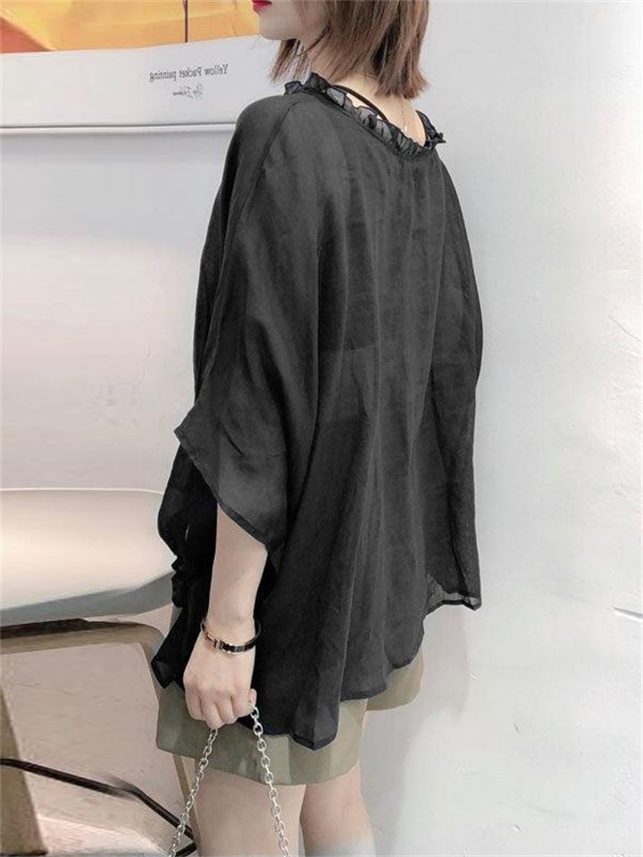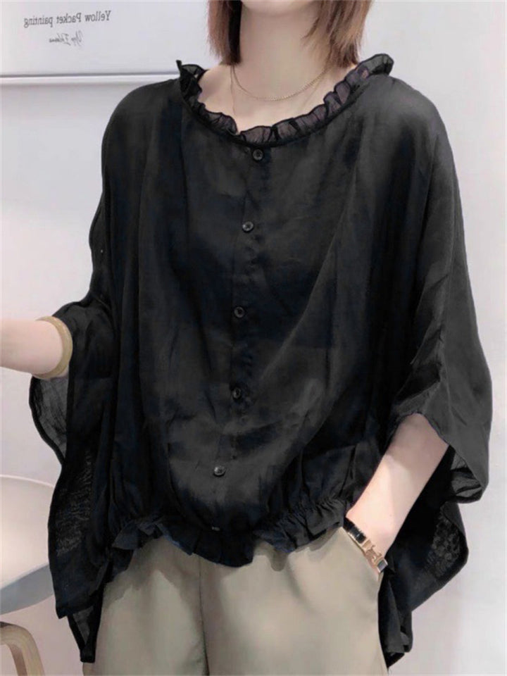 Lightweight Women's Ruffled Trim Batwing Sleeve Shirt