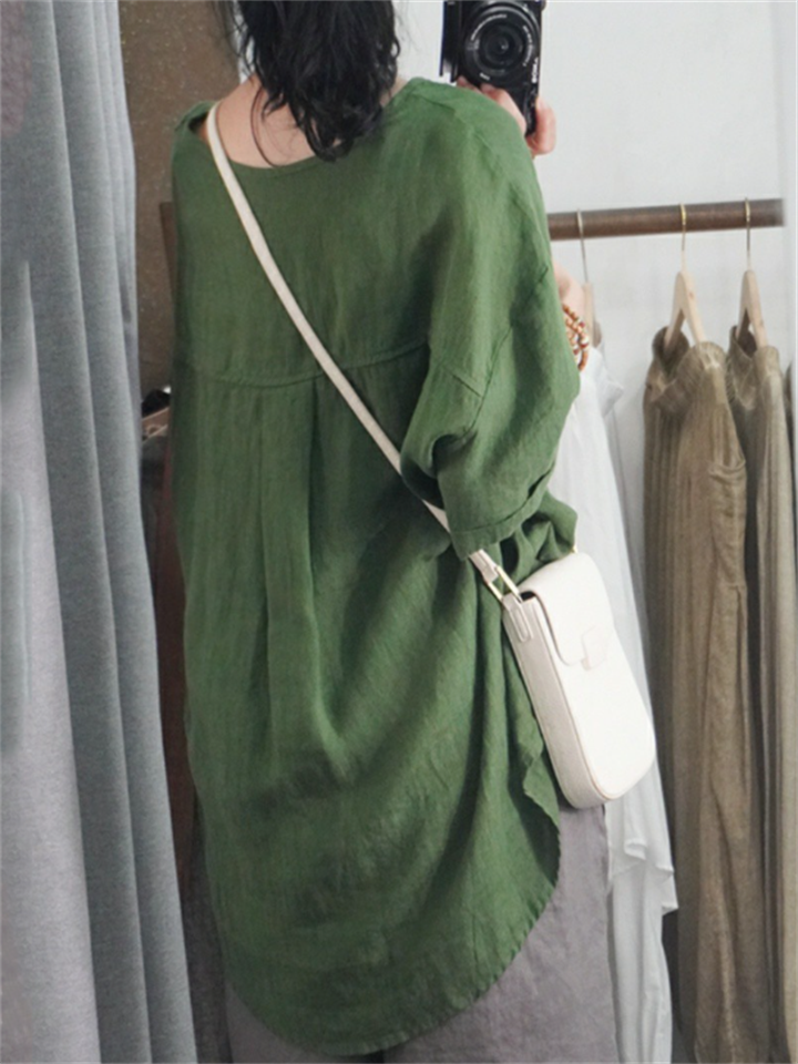 Women's Casual Solid Color 3/4 Sleeve Button Up Lapel Long Shirts